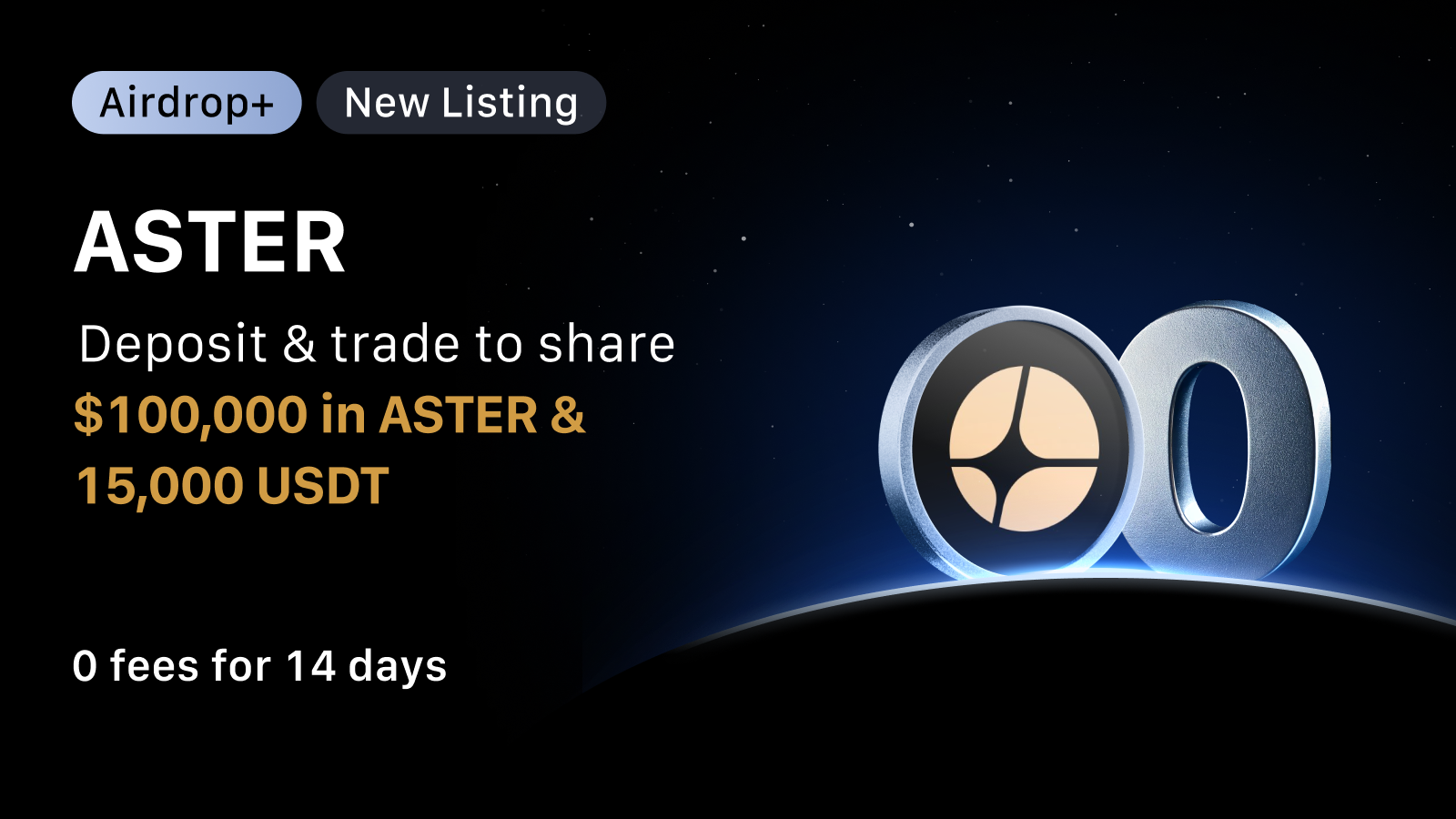 Join us in celebrating the listing of Aster (ASTER) on MEXC with a special event open to both new and existing users. Don't miss out on your chance to share the amazing prize pool and enjoy some of the lowest fees in the market when you trade with MEXC.