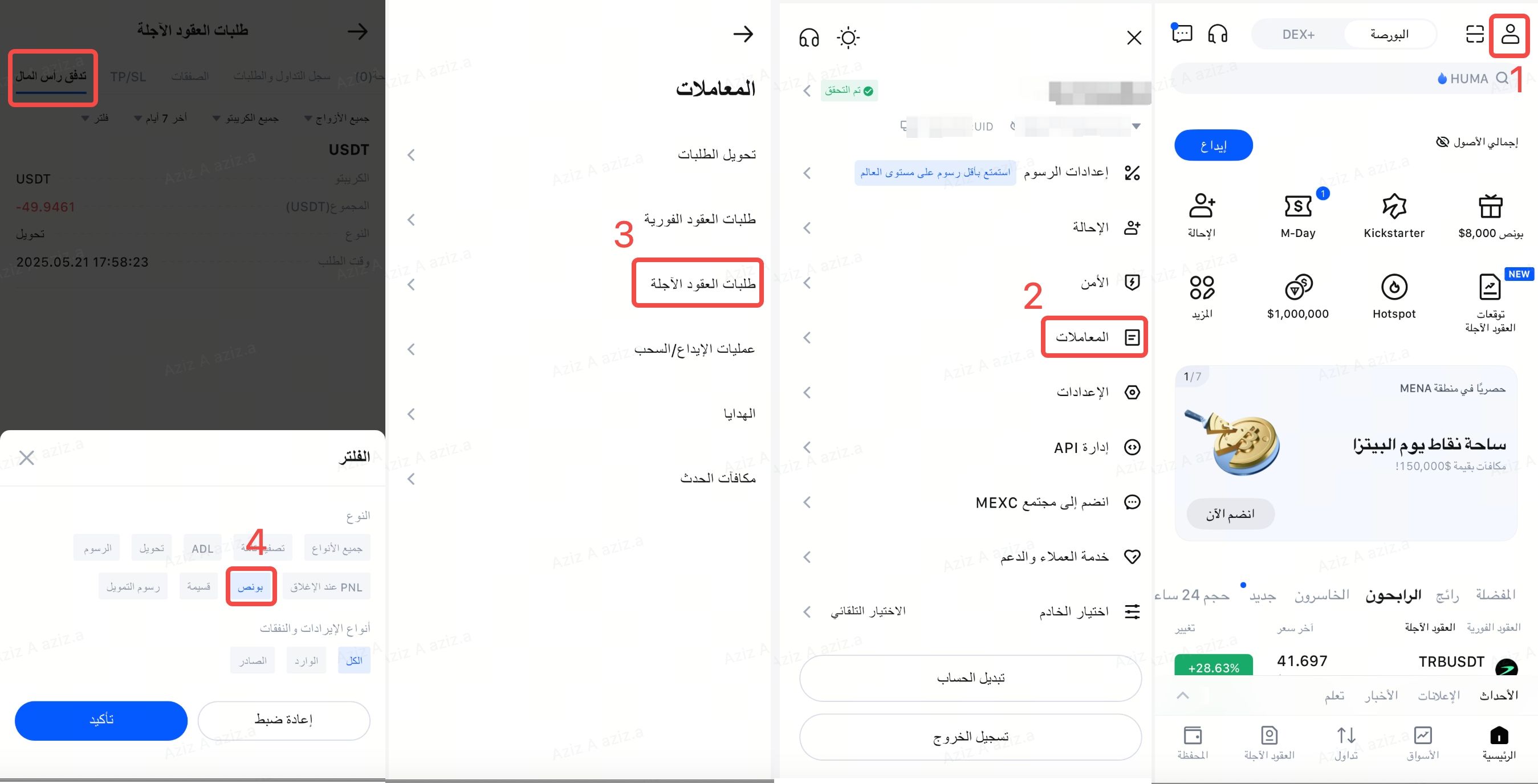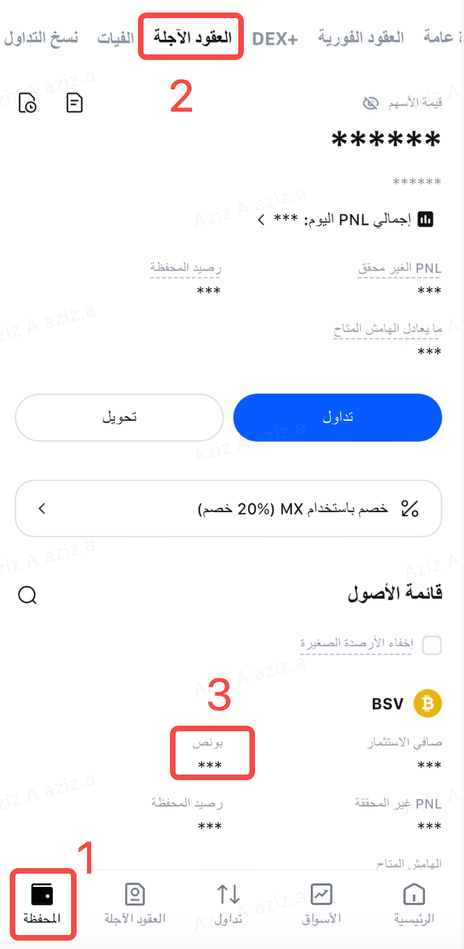 تحقق من رصيد بونص العقود الآجلة: سيتم إضافة بونص العقود الآجلة إلى محفظة العقود الآجلة الخاصة بك.