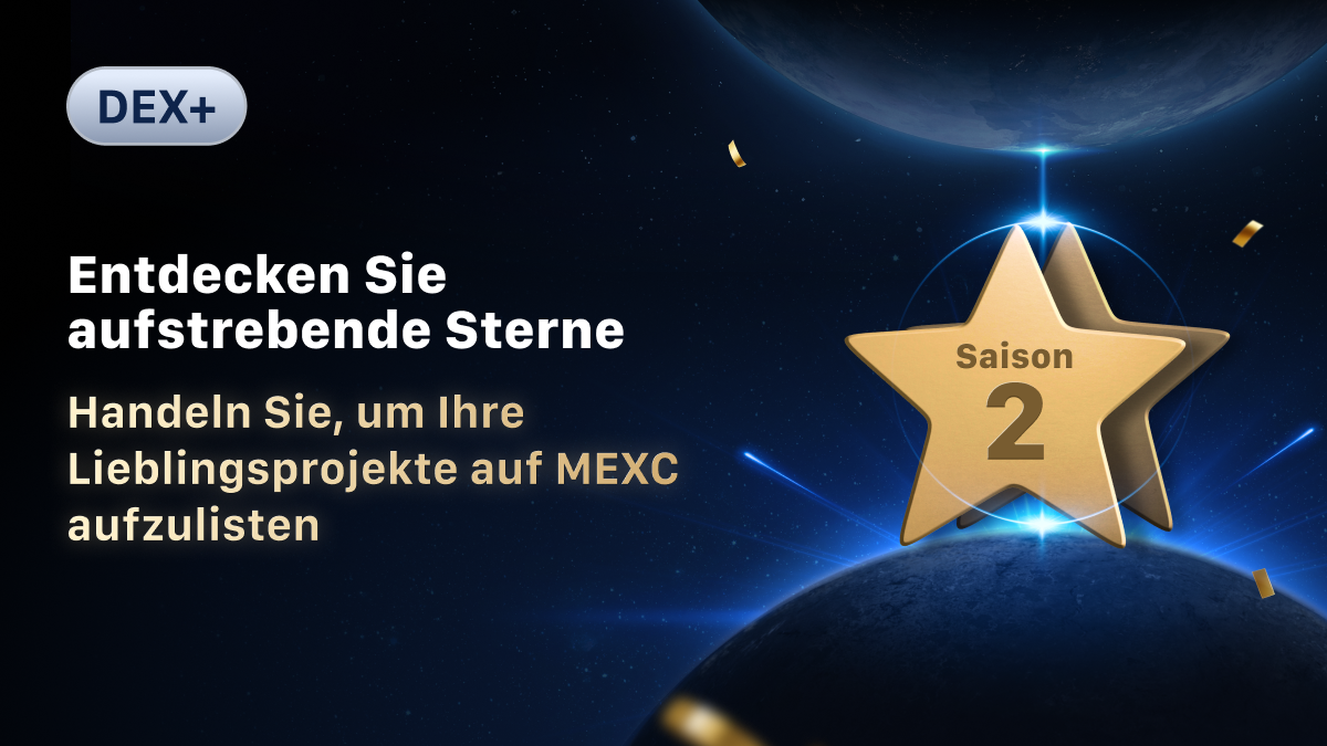„Aufstrebender Stern“ ist ein innovativer Ranking-Mechanismus auf MEXC DEX+, der durch eine punktebasierte Community-Abstimmung marktfähige Projekte identifiziert. Durch aktiven Handel mit dem Projekt-Token können Benutzer Punkte für ihre bevorzugten Projekte kummulieren und diese an die Spitze der Rangliste bringen – für die Chance auf eine Auflistung auf den MEXC Spot- und Futures-Märkten!