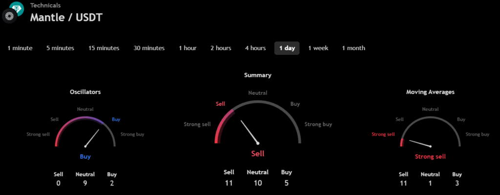 The technical analysis indicators such as Relative Volume (RVOL), Moving Average (MA), and Relative Strength Index (RSI) of Mantle (MNT) are shown in the chart below.