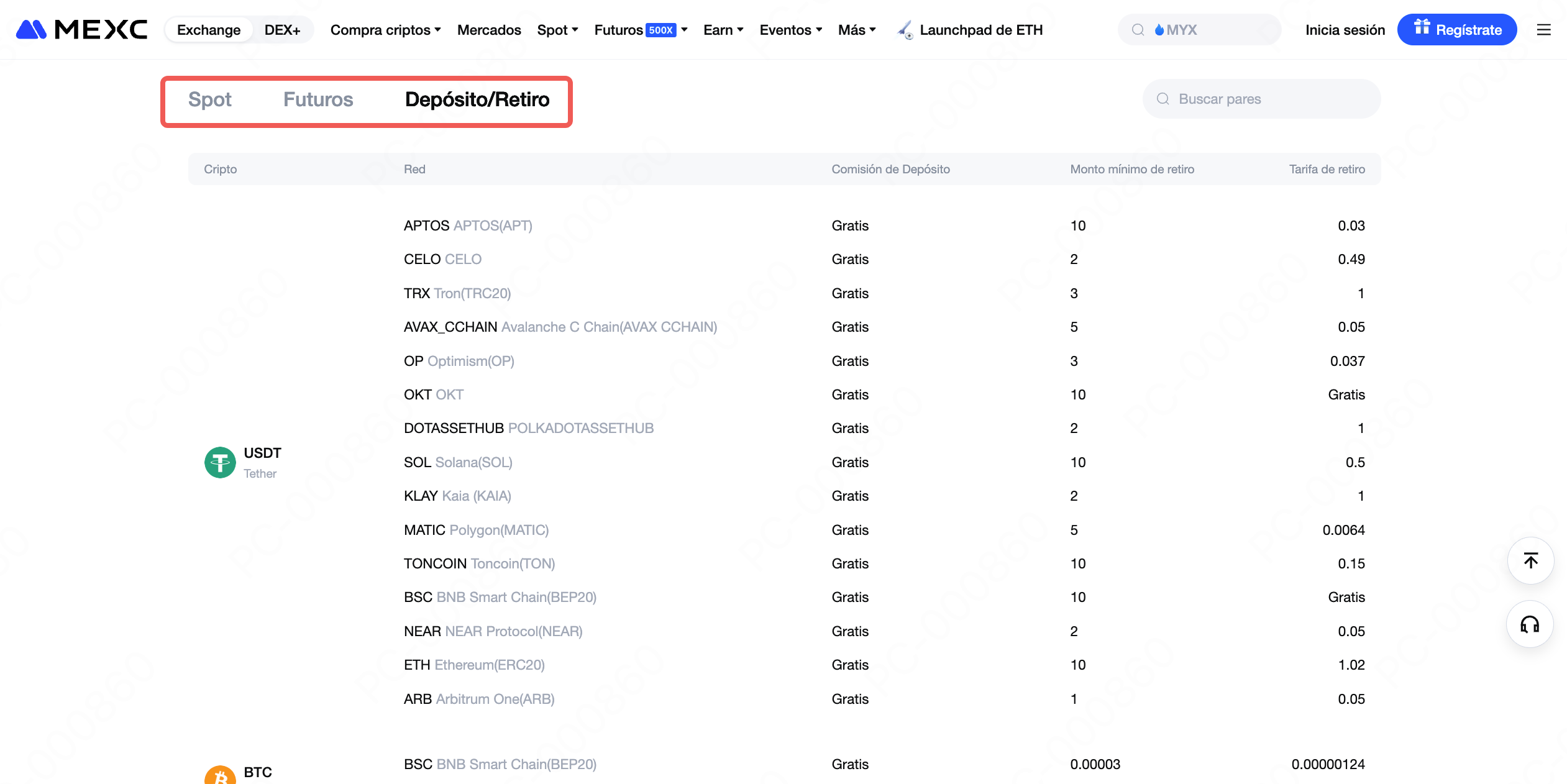 Nota: Las tarifas de retiro son determinadas por la red blockchain correspondiente. En casos de congestión de red u otros factores, las tarifas pueden ser ajustadas por la propia red. Puedes consultar la tarifa en tiempo real en la página de retiro; la cantidad mostrada allí es la más precisa. Si tienes alguna pregunta sobre las tarifas de retiro, comunícate con nuestro equipo de servicio al cliente en línea.