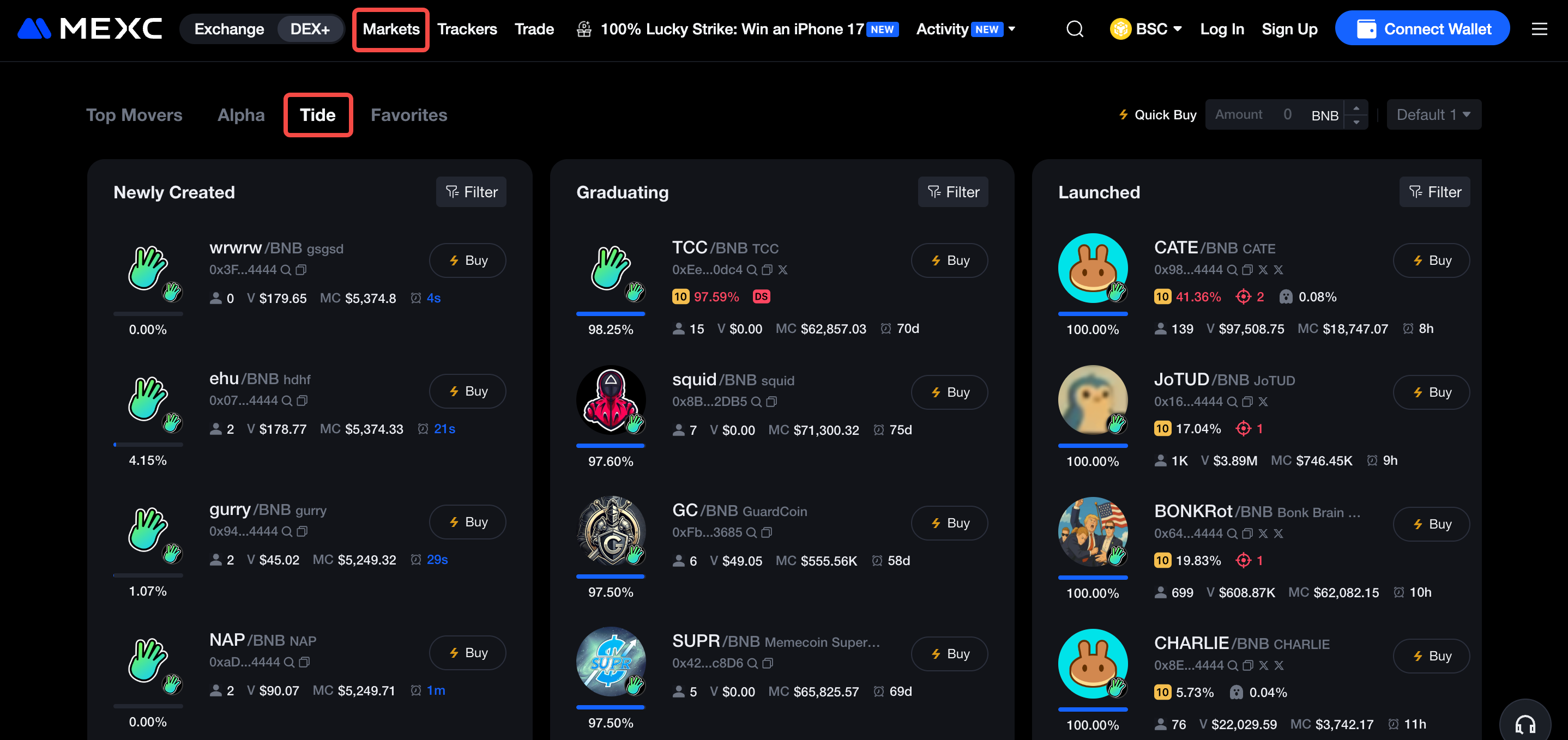 Maaaring gamitin ng mga nagsisimula ang pahina ng Tide upang mabilis na mahanap ang mga token na interesado sila, pagkatapos ay gamitin ang tampok na Bumili upang bumili ng mga token sa isang click lang.