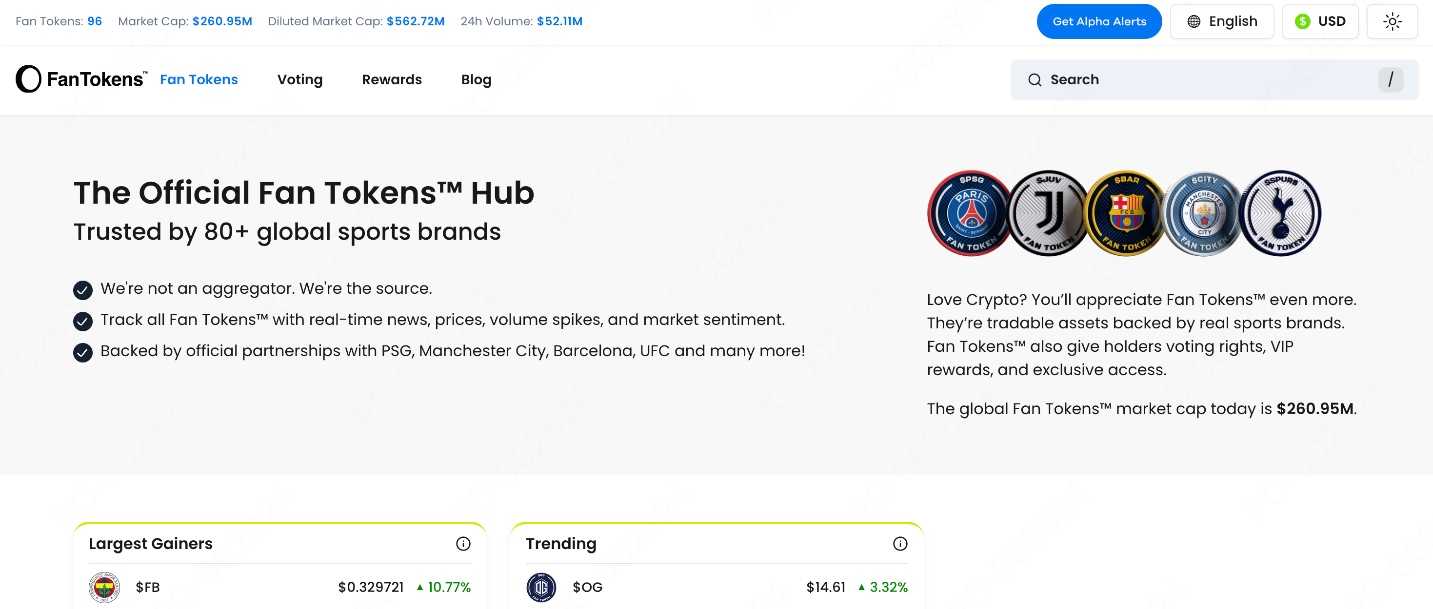Fantokens.com adalah sumber data dan agregator terkemuka untuk kelas aset Fan Token, di mana informasi terbaru dapat ditemukan pada lebih dari 80 fan token utama.