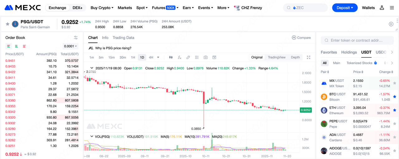 Berikut contoh cara membeli fan token PSG di MEXC:
