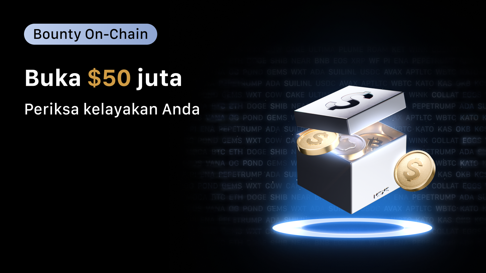 MEXC dengan bangga memperkenalkan Bounty On-Chain—sebuah acara baru yang memberikan hadiah kepada trader on-chain aktif dan mencerminkan komitmen kami untuk memberikan insentif berbasis kinerja yang bermakna. Dengan total hadiah hingga 50.000.000 USDT, inilah kesempatan Anda untuk mengubah aktivitas on-chain sebelumnya menjadi hadiah nyata!