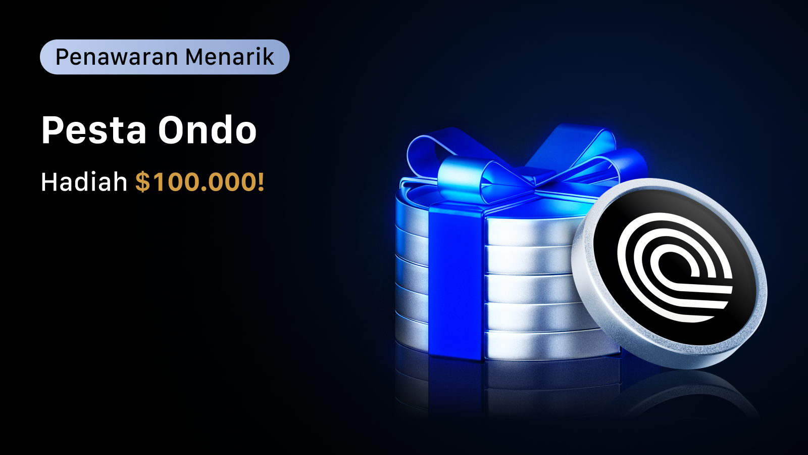 Selama acara berlangsung, lakukan deposit bersih minimal $100 dalam bentuk token yang memenuhi syarat (saham token ONDO) atau 100 USDT atau 100 USDC untuk menerima $10. Hadiah dibatasi hingga 2.000 pengguna berdasarkan siapa yang tercepat.