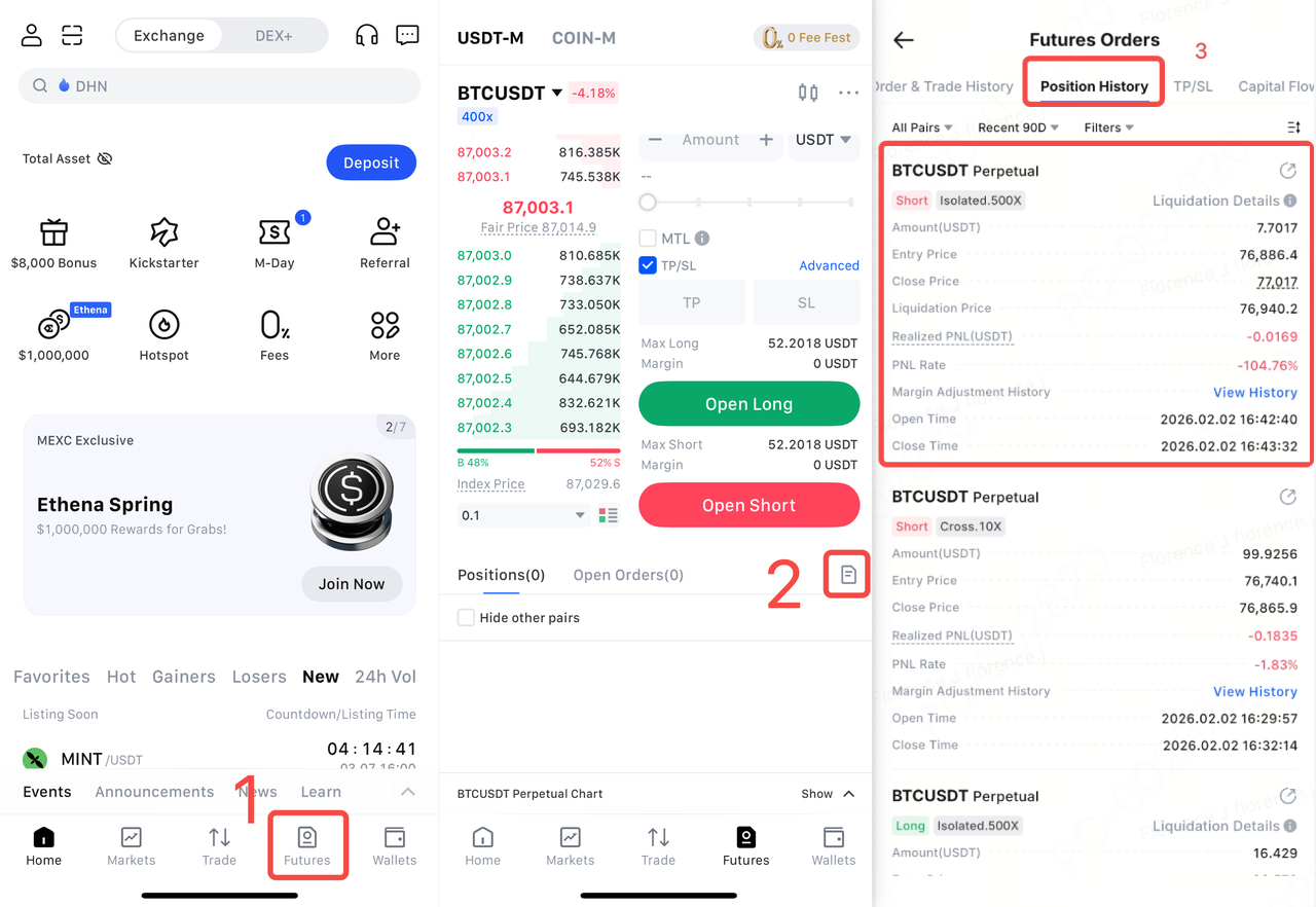 3)Periksa order Anda yang telah dilikuidasi dalam Riwayat Posisi.