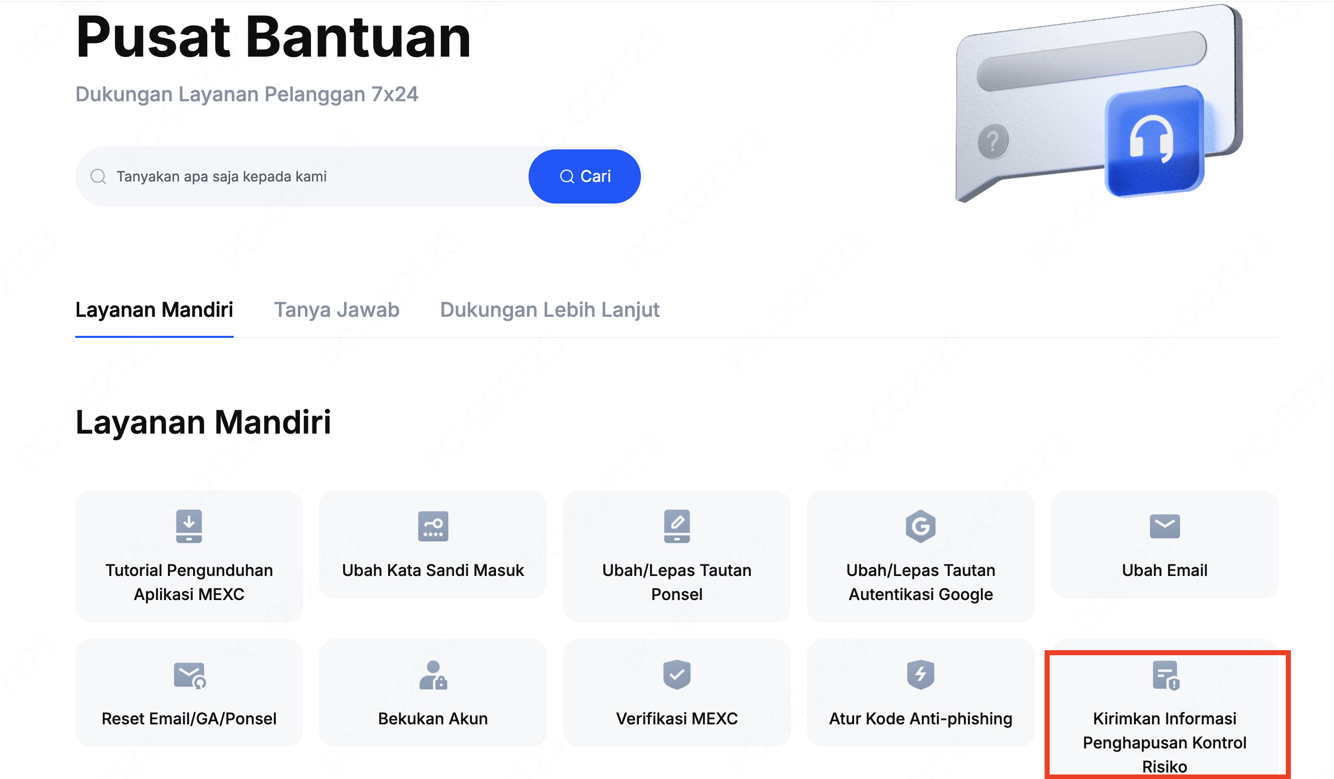 Pengguna dapat mengakses halaman pengajuan melalui Situs Web ResmiPusat BantuanTinjauan Risiko Akun untuk mengunggah dokumen identitas dan sumber dana. Tinjauan biasanya melibatkan verifikasi dokumen (sekitar tiga hari kerja) diikuti dengan analisis perilaku risiko. Progres dapat dilacak di halaman, dengan pembaruan yang diberikan melalui email.