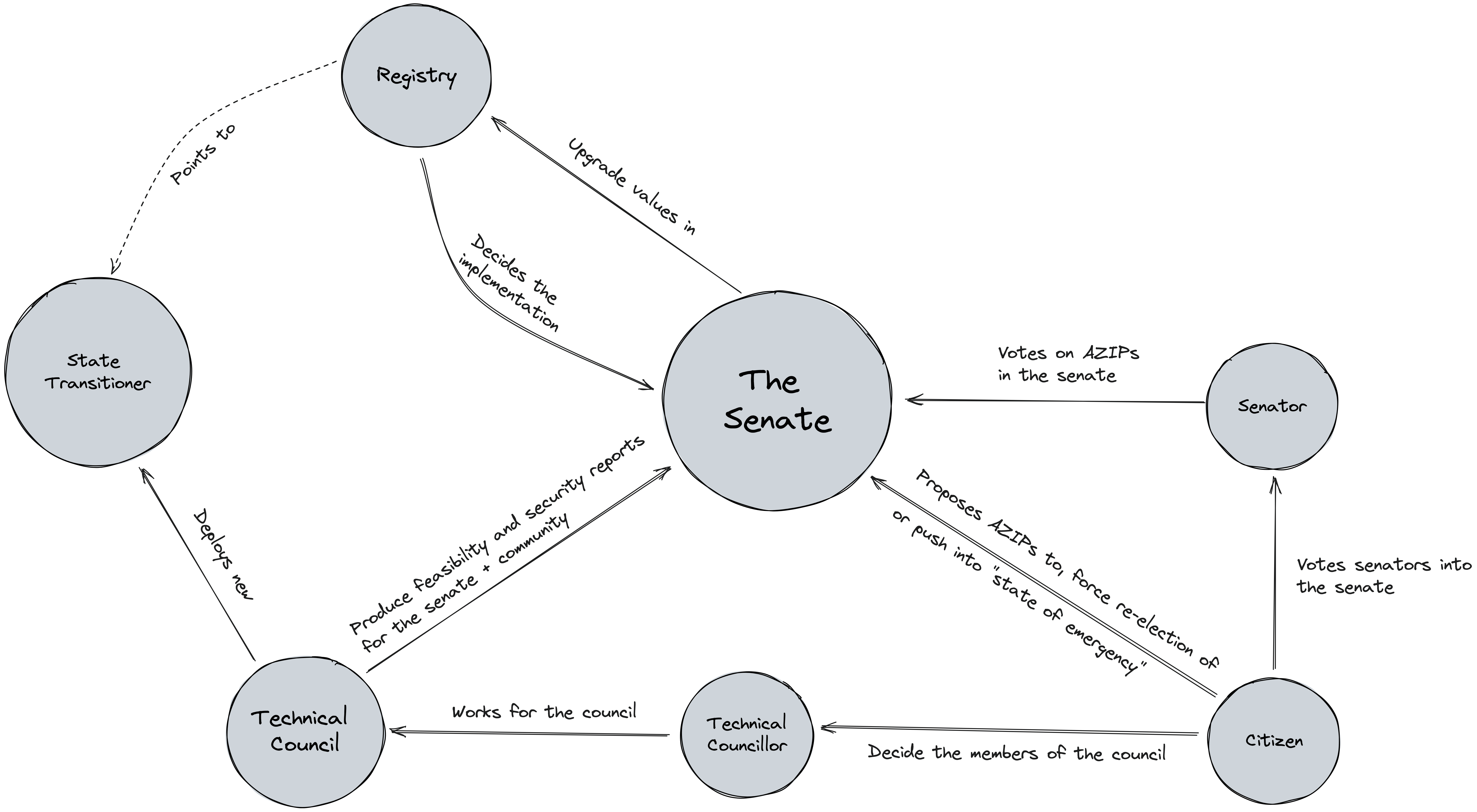 Sequencer (yang harus melakukan staking token) memulai proposal dengan menandakan keinginan untuk upgrade; jika m/n Sequencer mendukung dalam blok yang ditentukan, proposal maju ke pemungutan suara token.