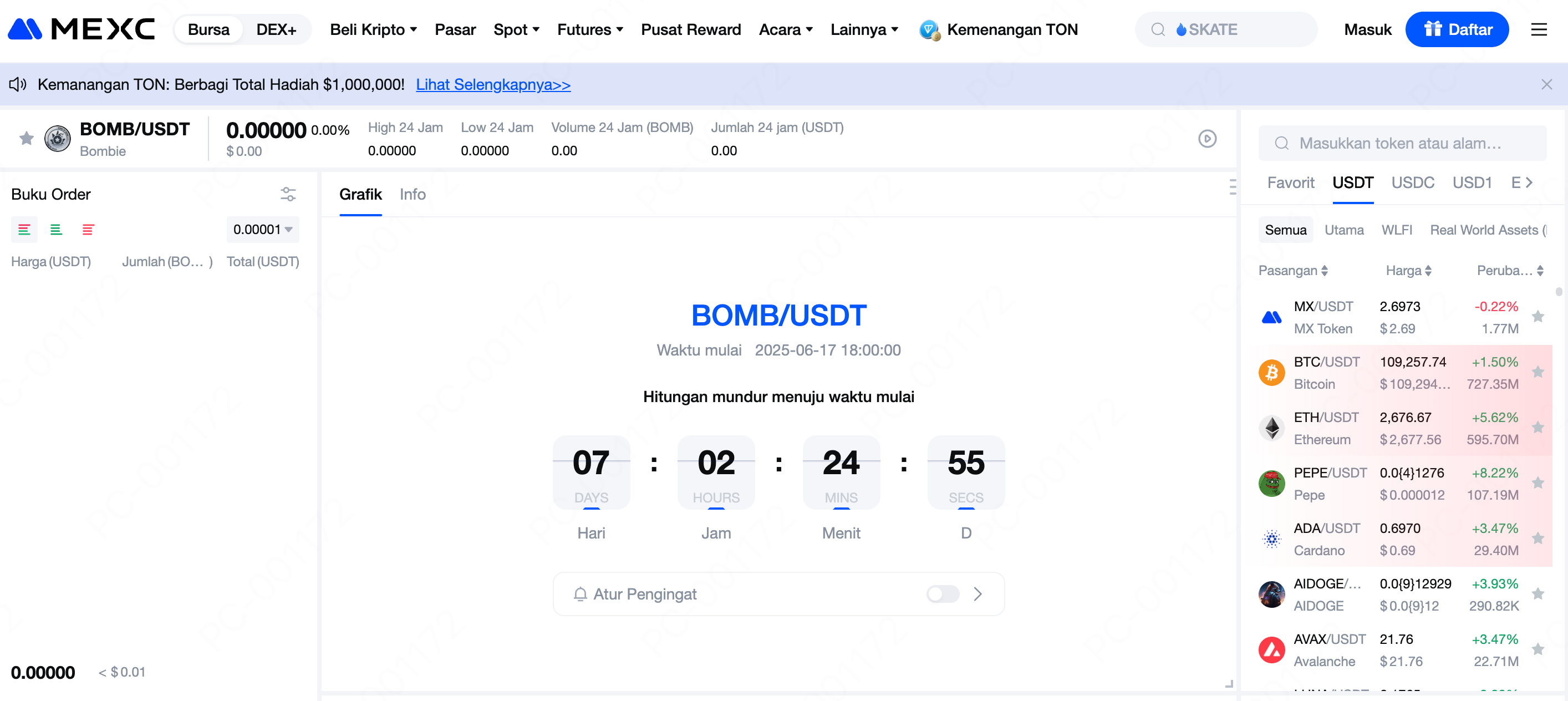 2) Pada bilah pencarian, masukkan BOMB, lalu pilih trading Spot atau Futures.