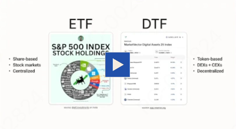 DTF (Folio Token Terdesentralisasi) merupakan instrumen finansial inovatif yang dibangun pada Reserve Protocol yang memungkinkan siapa saja untuk membuat, mengelola, dan melakukan trading portofolio investasi yang terdiri dari sejumlah aset kripto secara publik. Setiap DTF berfungsi sebagai token bergaya indeks bertenaga smart contract yang didukung oleh sekumpulan aset kripto nyata. Portofolio ini otomatis dialokasikan dan diseimbangkan ulang sesuai dengan strategi yang telah ditetapkan dari manajer risiko DeFi yang berpengalaman seperti Re7 Capital, Steakhouse Financial, dan MEV Capital.