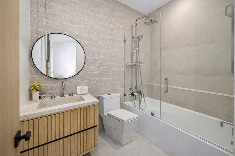 Perhatian secara alami beralih ke perlengkapan yang menentukan kenyamanan sehari-hari. Sanitaryware yang dipilih dengan cermat membawa efisiensi yang tenang ke dalam rutinitas. Pozzi Clove Watercloset dengan kelengkapan tangki dan penutup dudukan menawarkan fungsionalitas yang dapat diandalkan dalam bentuk yang bersih dan modern. Dipasangkan dengannya, Pozzi Coldline Lavatory Faucet dan Sefa Exposed Shower Set, keduanya menarik secara visual dengan desain klasik dan finishing mengkilap yang terasa ramping. Melengkapi pengaturan ini adalah Birke Leeds Recess Wall Shower and Bath Mixer, dirancang untuk menggabungkan fungsi shower dan bath menjadi satu unit dengan tampilan bersih dan minimalis yang mendorong pengalaman mandi yang lebih menyenangkan.