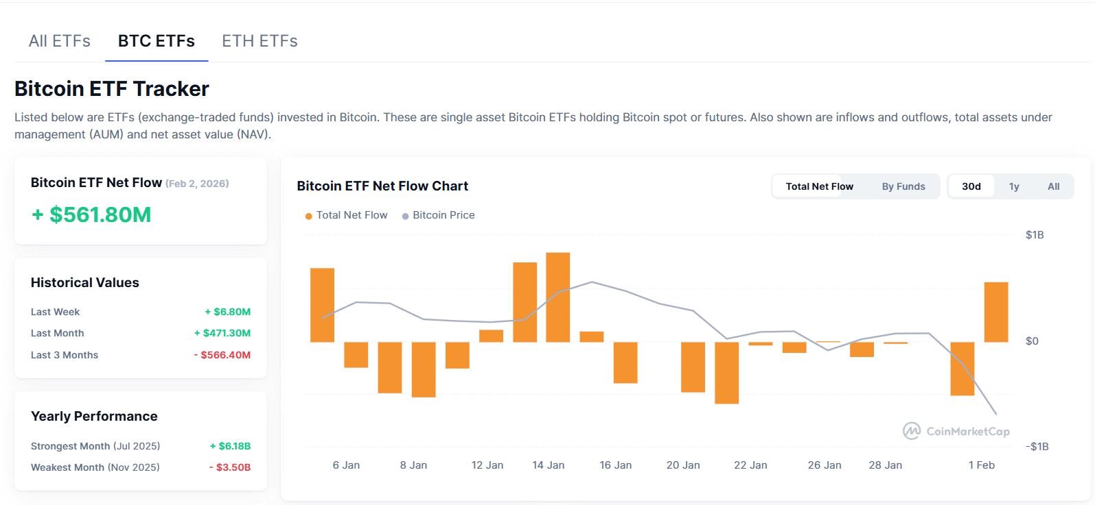 Jika melihat data Bitcoin ETF, arus dana menunjukkan sinyal yang masih campuran. Dalam satu bulan terakhir, ETF Bitcoin masih mencatatkan inflow sekitar USD 471 juta, yang menandakan minat institusional belum sepenuhnya hilang meskipun pasar sedang tertekan. Namun, jika ditarik ke tiga bulan terakhir, arus dana justru masih net outflow sekitar USD 5,66 miliar, yang mencerminkan sikap hati-hati institusi dalam kondisi ketidakpastian makro. Tekanan terbesar terjadi pada November 2025, ketika terjadi outflow sekitar USD 3,5 miliar, menunjukkan fase distribusi dan pengurangan eksposur risiko. Artinya, meskipun inflow jangka pendek mulai muncul, secara struktural institusional masih cenderung defensif terhadap aset kripto.