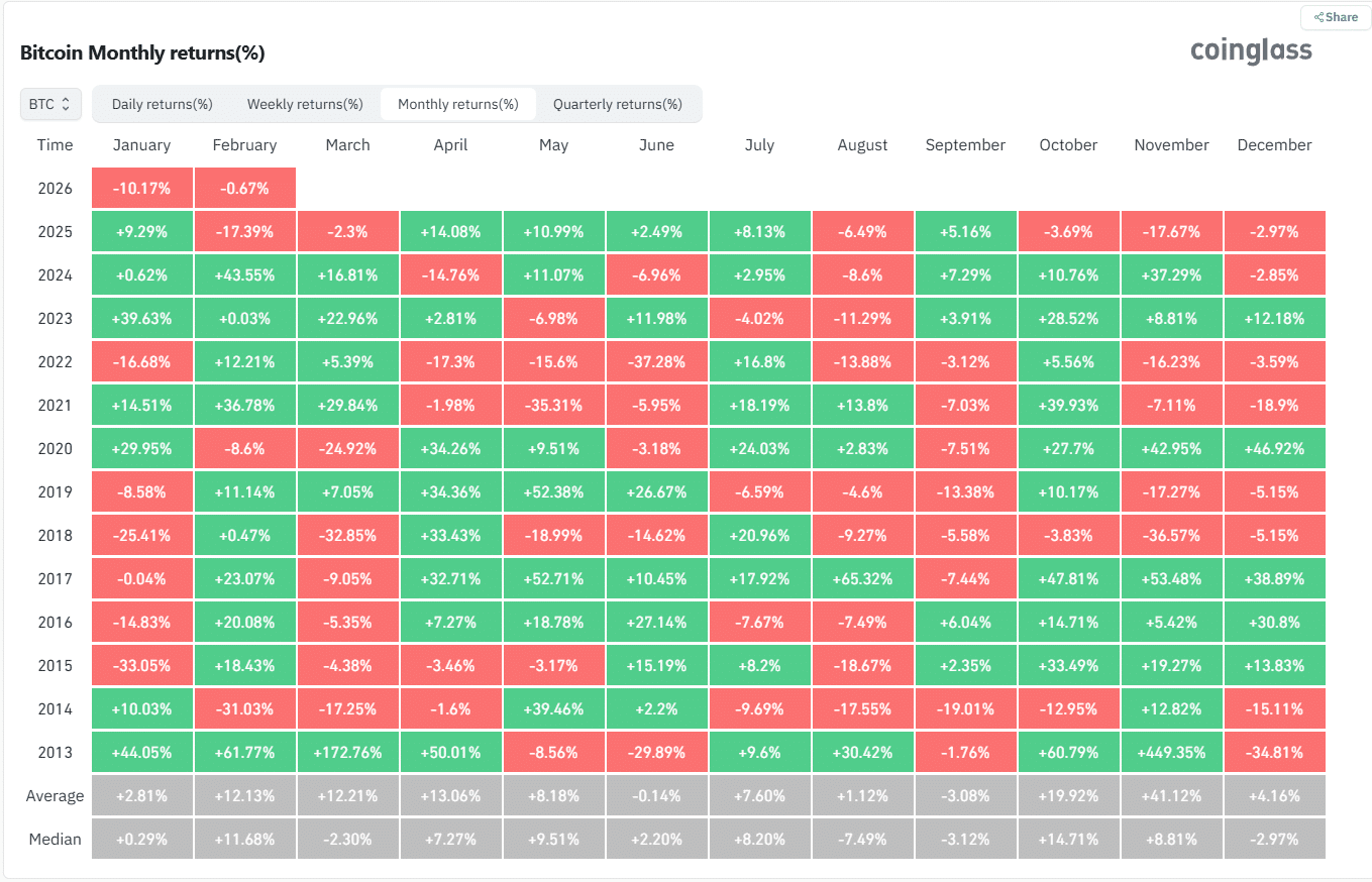 Pada Januari 2026 misalnya, Bitcoin justru menutup bulan dengan kinerja negatif di kisaran -10,17%, yang menunjukkan bahwa meskipun secara historis rata-rata Januari positif, outcome aktualnya sangat bergantung pada kondisi siklus dan sentimen pasar saat itu.
