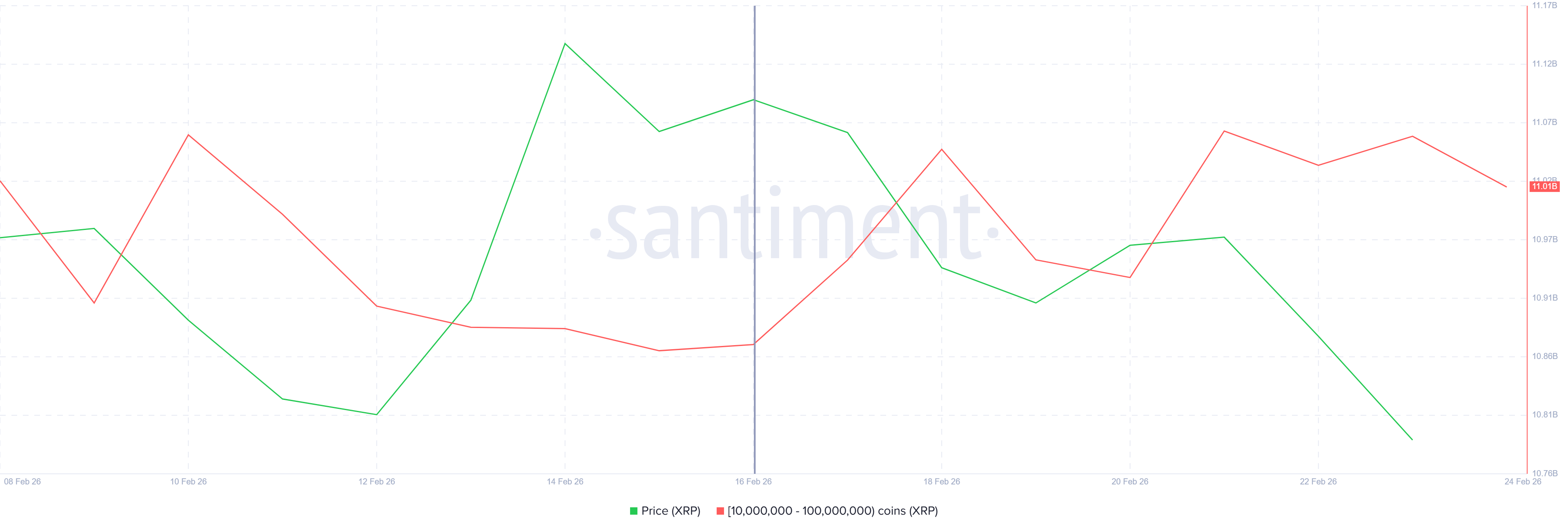 Dilaporkan BeInCrypto, alamat yang memegang antara 10 juta hingga 100 juta XRP dilaporkan mengakumulasi lebih dari 170 juta token dalam sepekan terakhir. Pembelian ini terjadi justru saat harga turun 9%.