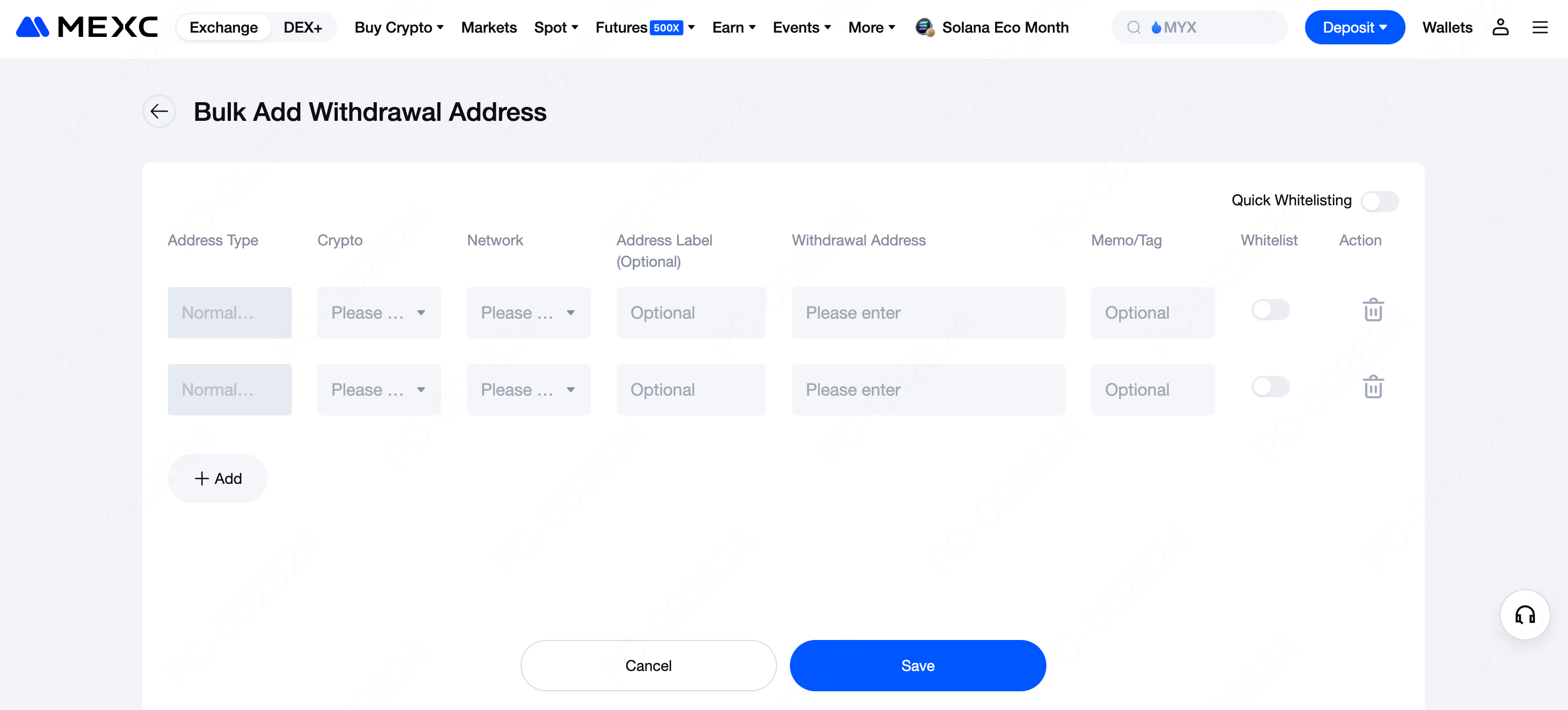 Dalam skenario penggunaan praktis, jika Anda memiliki kebiasaan investasi jangka panjang, Anda dapat membeli token yang diinvestasikan pada platform MEXC, lalu menggunakan fitur Whitelist untuk menarik dengan cepat ke berbagai alamat dompet. Jika Anda sering melakukan transfer kecil ke alamat tertentu, seperti membayar gaji kepada kolaborator, menggunakan fitur Penarikan Cepat juga dapat meningkatkan efisiensi Anda.