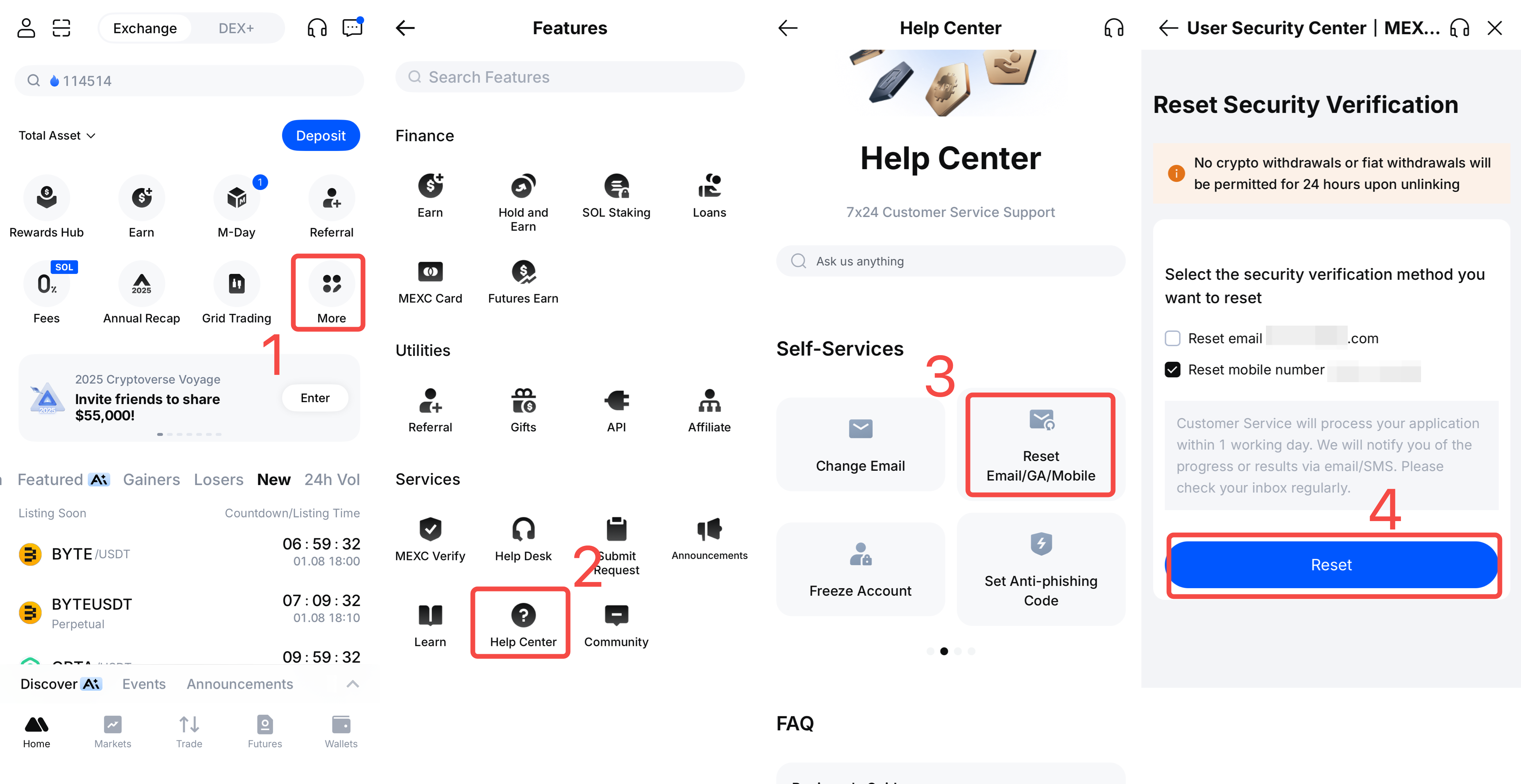Jika nomor ponsel tidak lagi tersedia dan tidak dapat menerima kode verifikasi SMS dari MEXC, permohonan pelepasan tautan dapat diajukan melalui fitur Layanan Mandiri Pusat Bantuan. Bagian berikut menyajikan instruksi detail untuk aplikasi dan web.