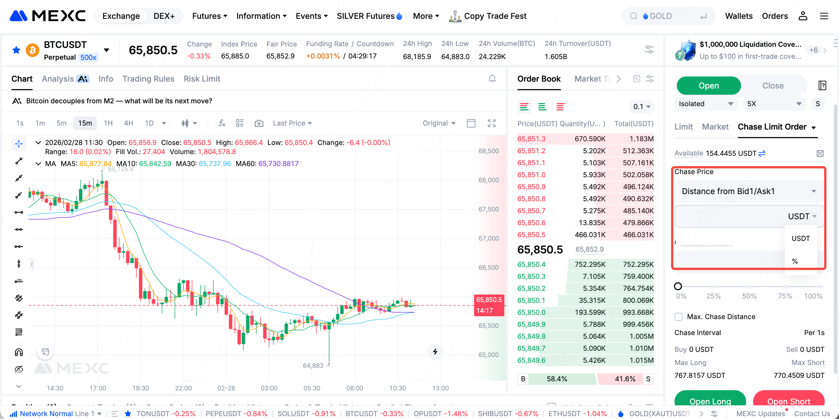 7. Bagaimana cara mengatur chase limit order di MEXC?