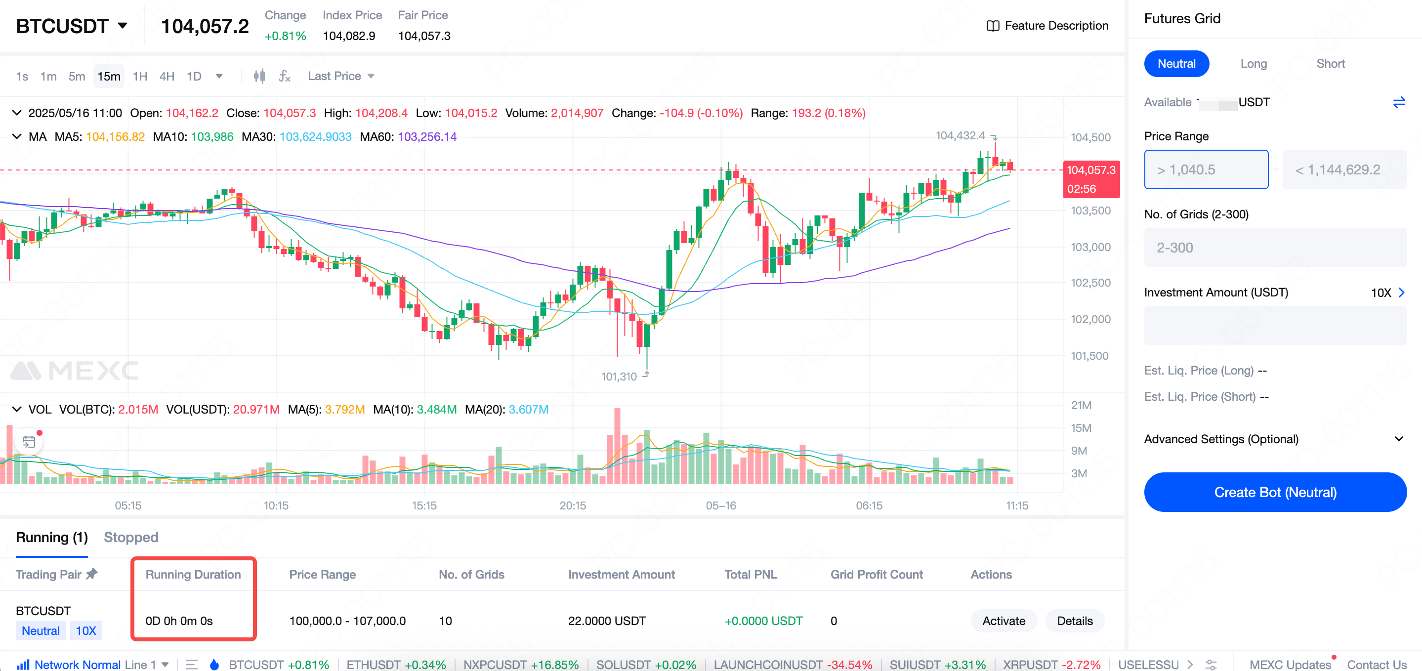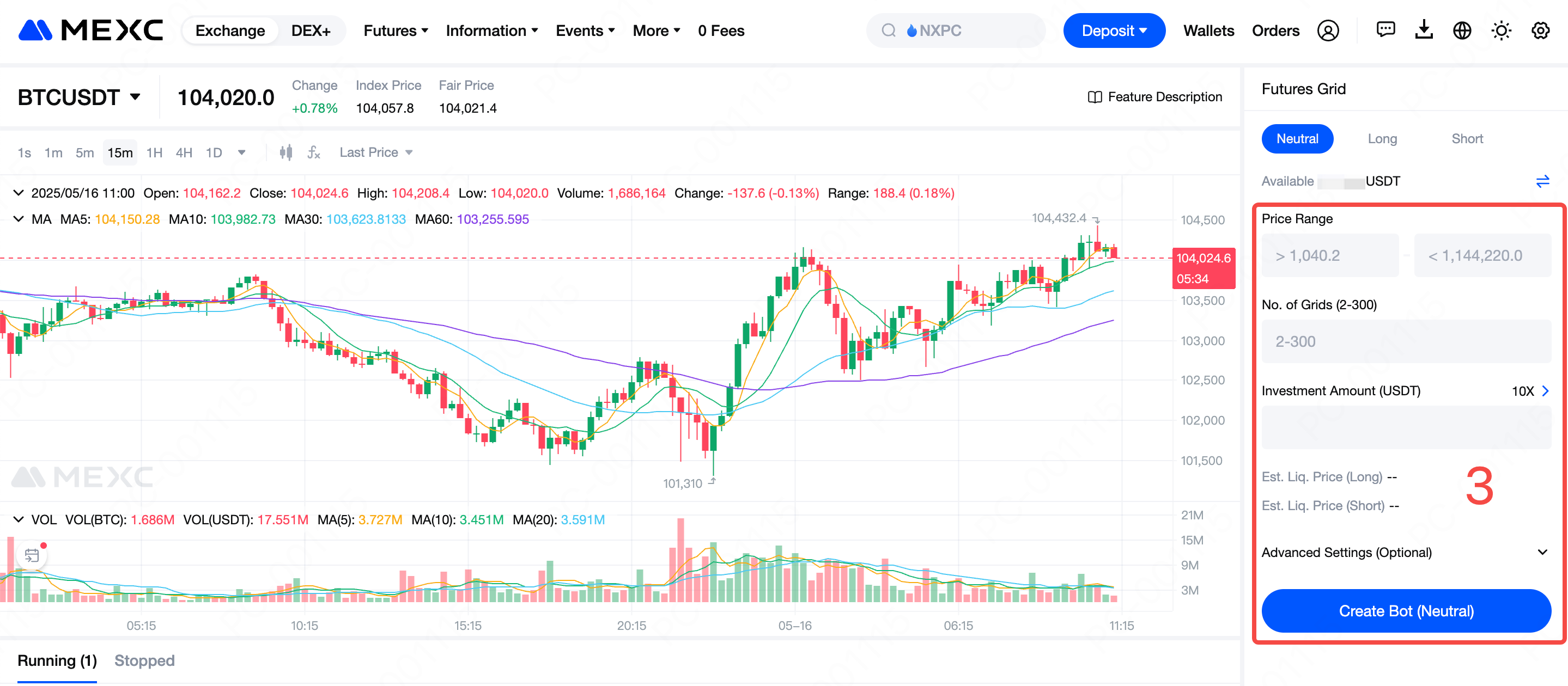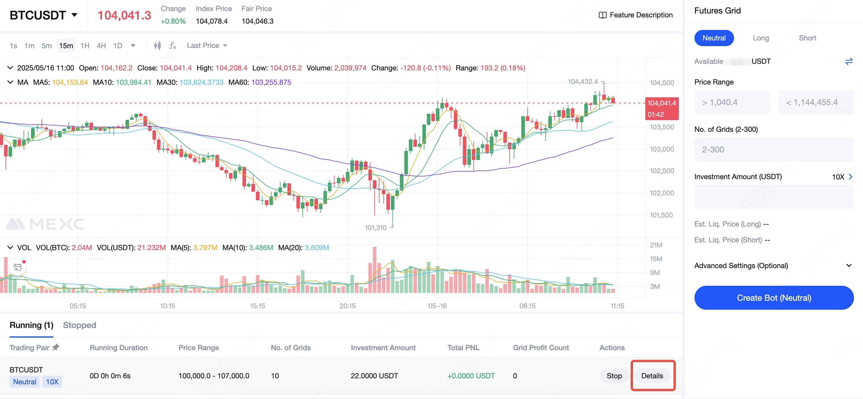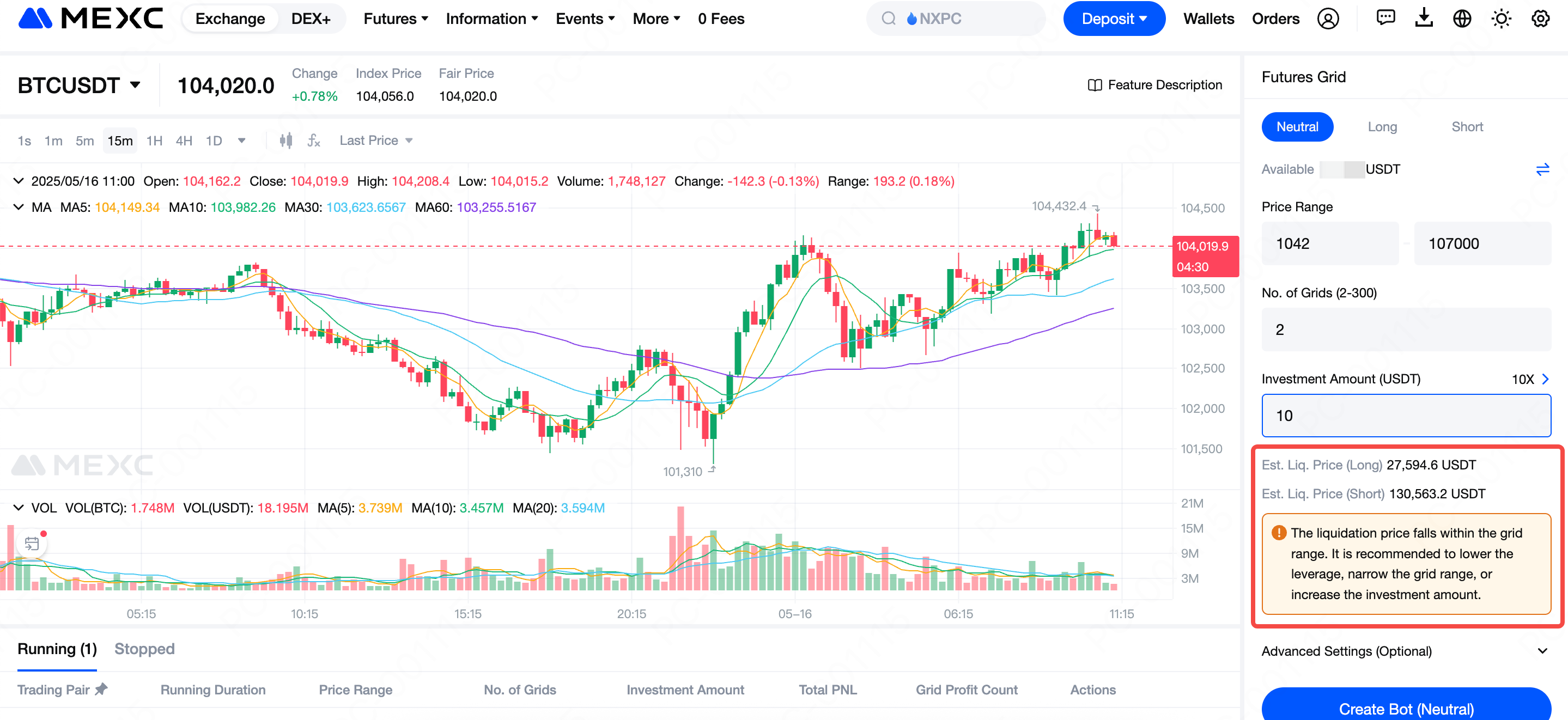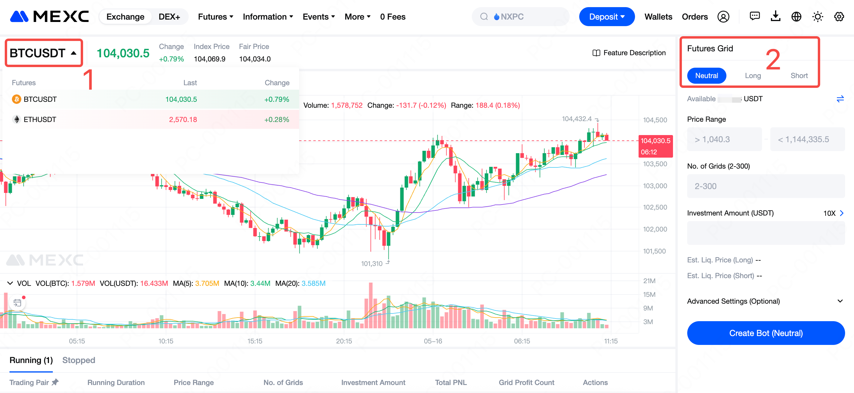 8) Il trading grid futures di MEXC attualmente supporta i futures USDT-M.