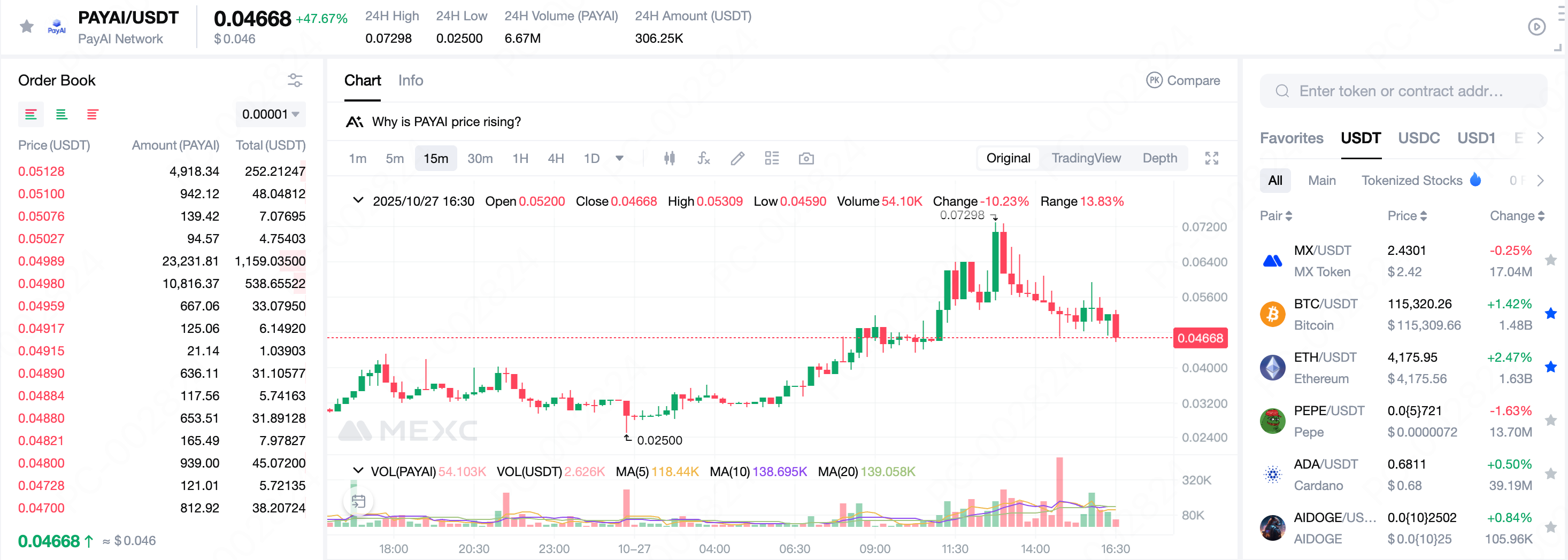 Attualmente, PAYAI è disponibile sia per il trading spot che per il trading di futures su MEXC, consentendo agli utenti di fare trading del token con commissioni estremamente basse.