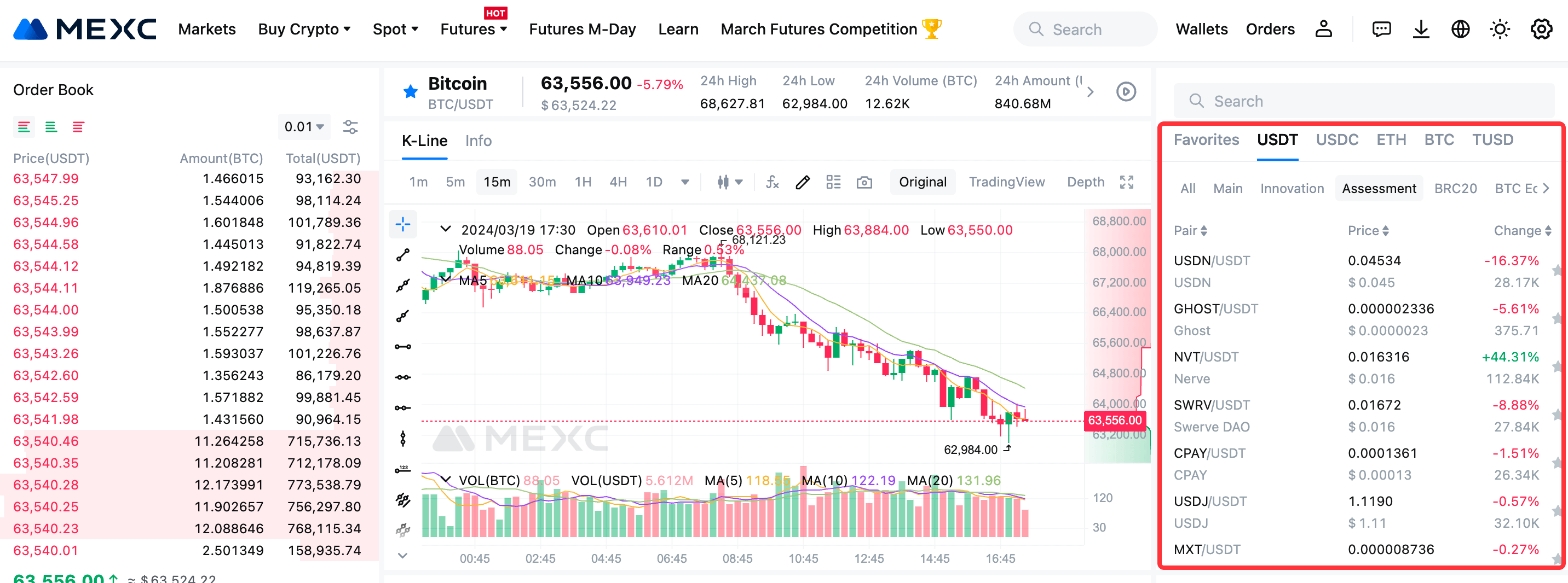 MEXCのMX/USDTの市場価格が2.25 USDTの場合、1 MXを購入すると2.25 USDT、1 MXを売却すると 2.25 USDTを受け取ります。取引完了後、資産は即座に決済され、ユーザー様の現物アカウントに入金されます。