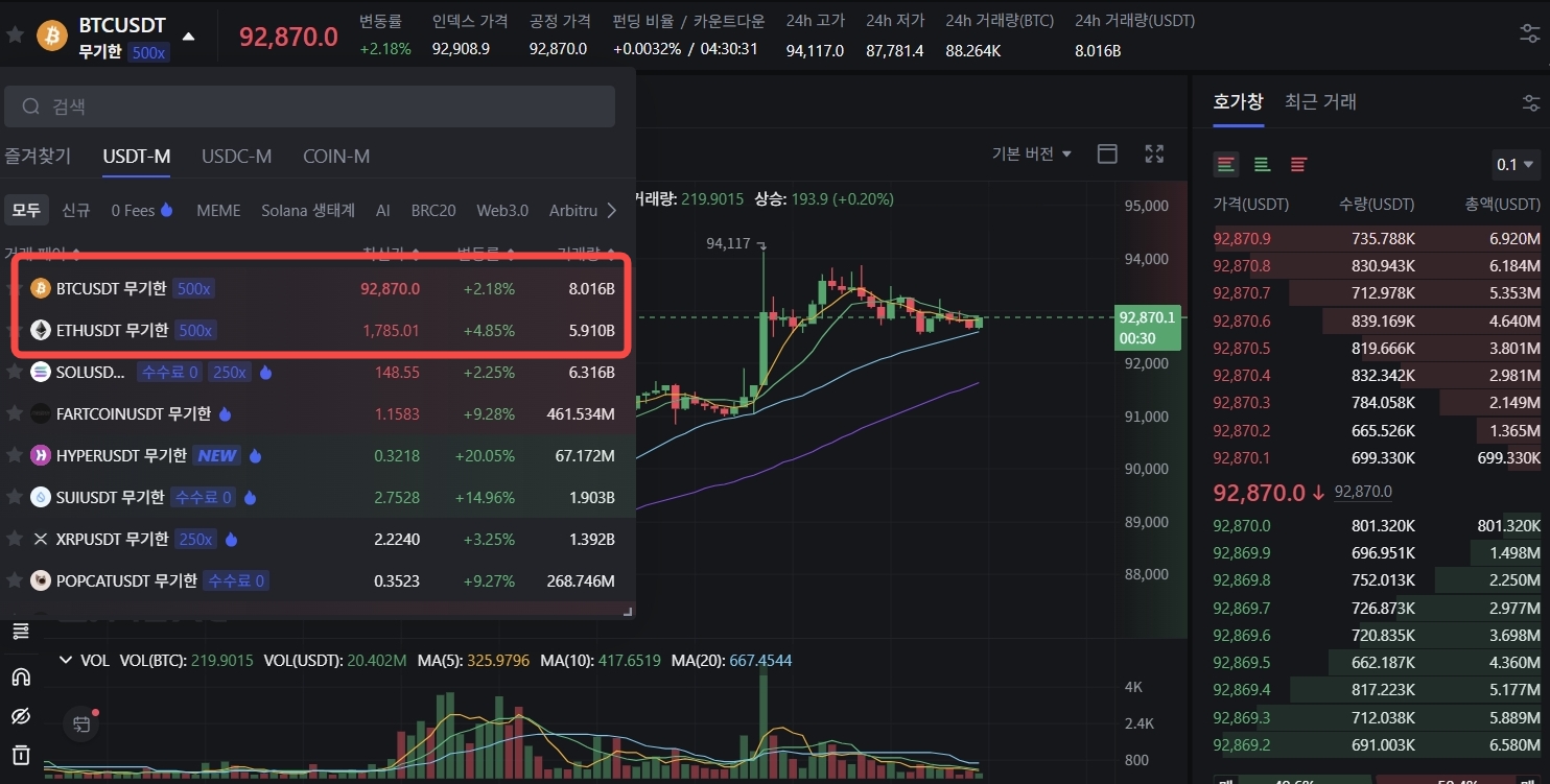 2단계: 500배 레버리지를 지원하는 선물 페어를 선택하세요. 현재 지원되는 페어는 BTCUSDT와 ETHUSDT입니다.