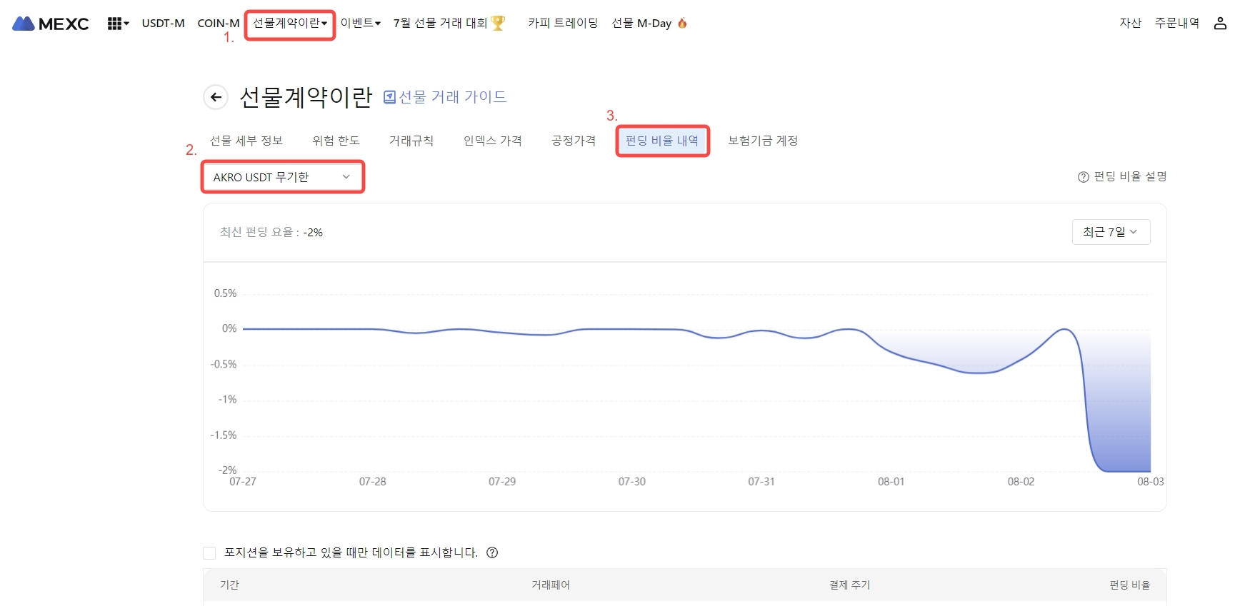 2023년 8월 3일 01:45 (KST)부터 MEXC 선물은 AKRO USDT-M 선물의 펀딩 비율 정산 주기를 4시간에 한 번으로 조정합니다. 자세한 내용은 아래와 같습니다: