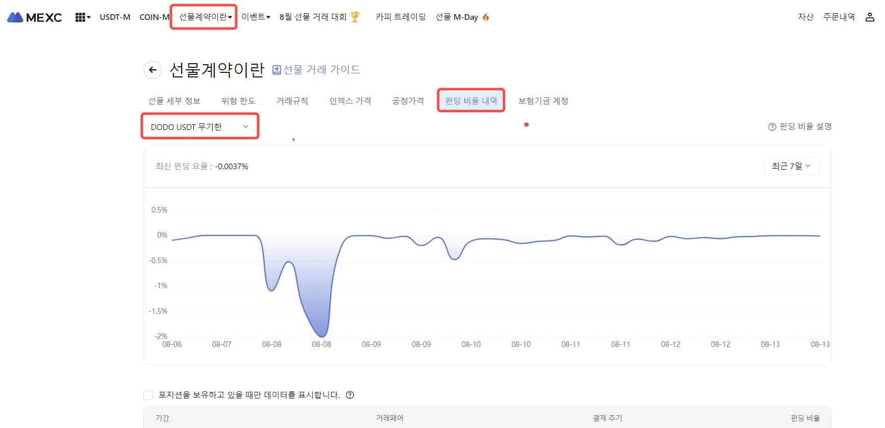시간 (KST) | DODOUSDT 선물 최대 펀딩 비율 |