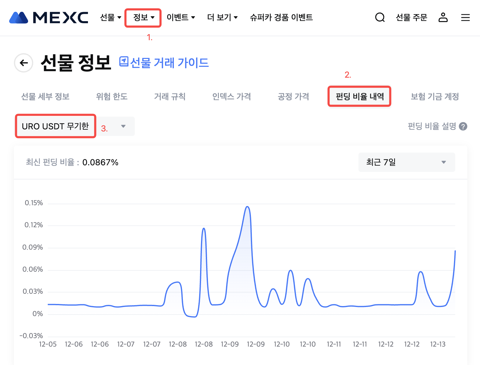 최신 펀딩 비율에 대한 자세한 내용은 선물 정보 - 펀딩 비율 내역을 참조하세요.