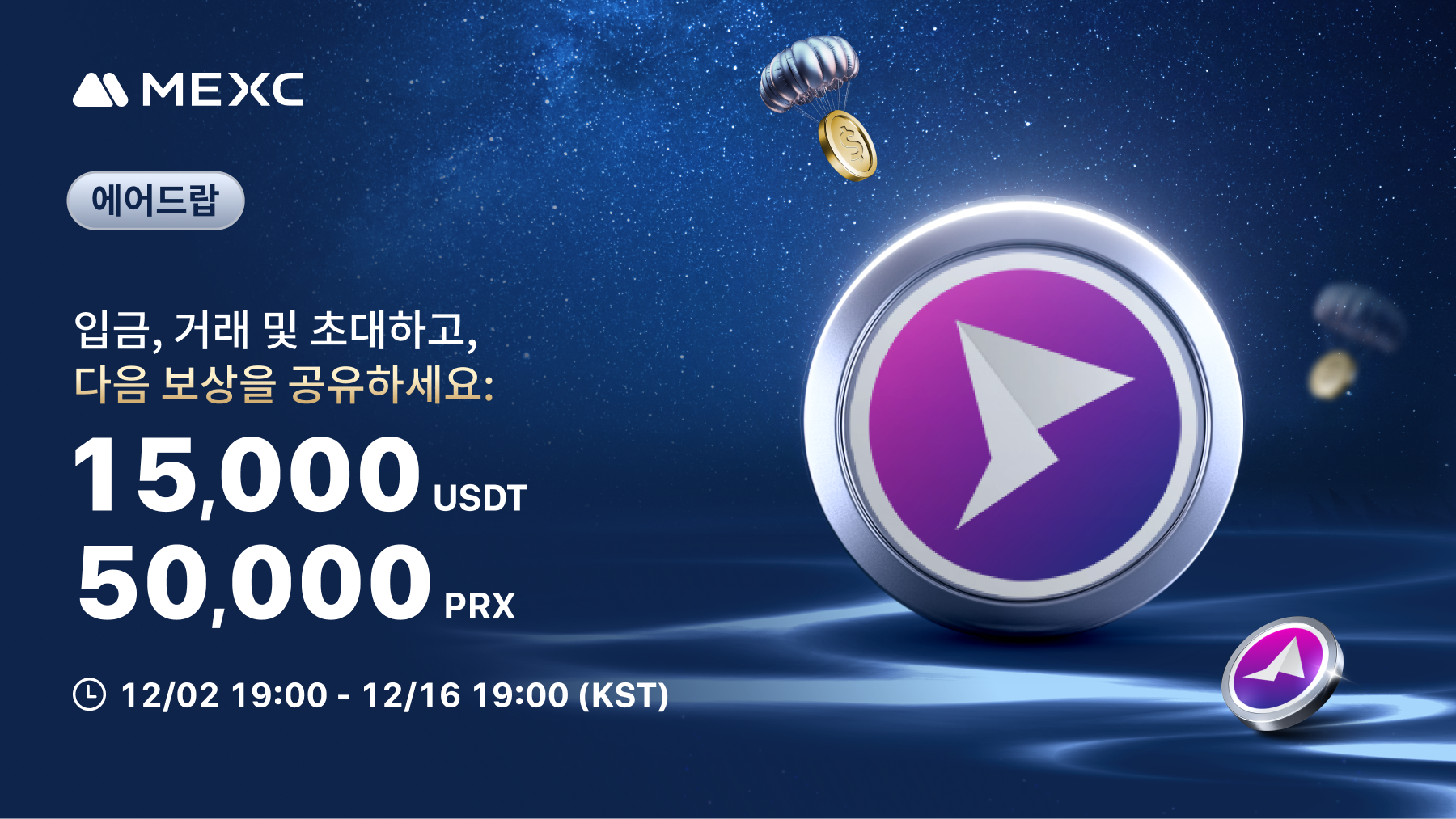 이벤트 기간 중 아래 미션을 완료하면 거래량에 비례하여 30,000 PRX를 공유할 수 있습니다: