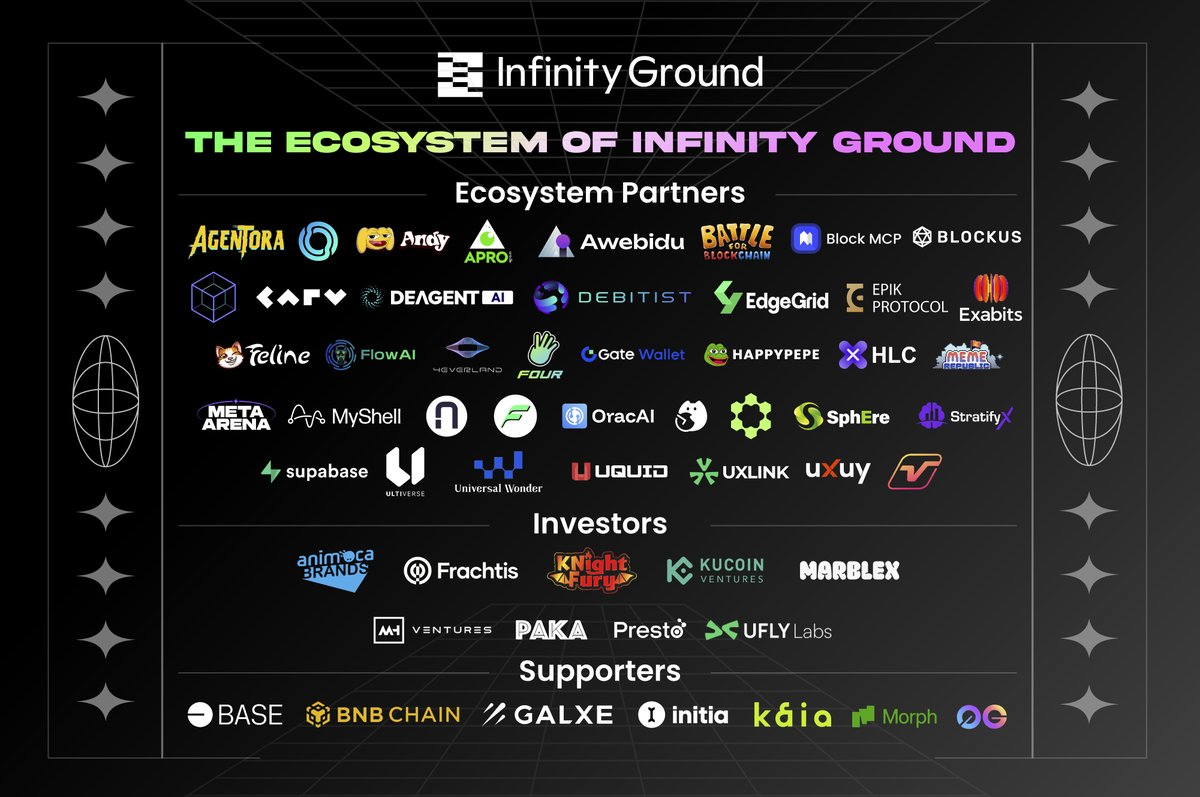 Infinity Ground's ecosystem spans the technology layer, infrastructure layer, and community network layer, creating a highly diverse foundation for collaboration. This diversity is reflected in its broad and deep partnership network. Here are a few notable collaboration examples: