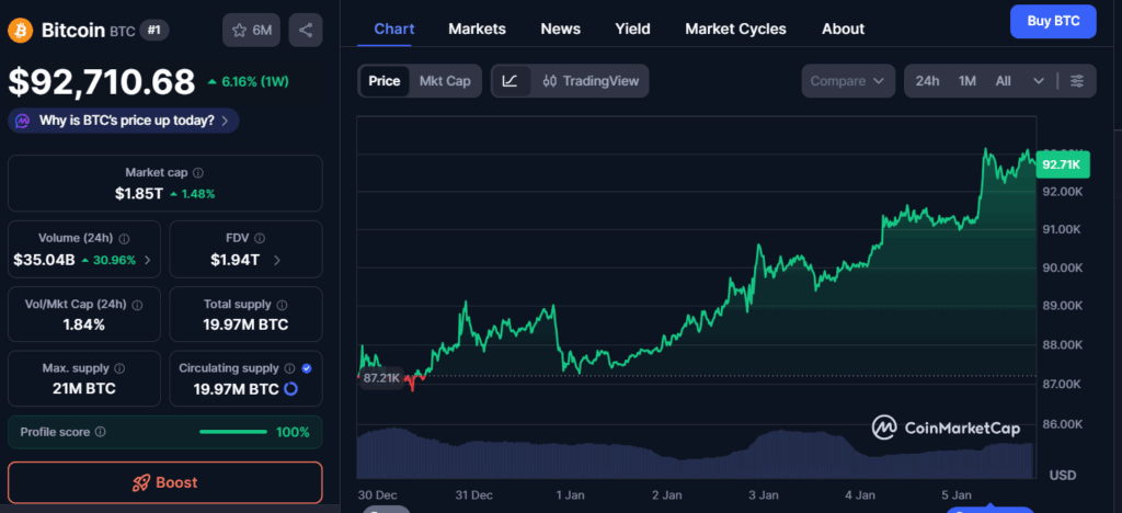 As BTC is currently trading at $92,710 at the time of writing, it has increased around 6.16% over the past week. As its 24-hour trading volume increased 30.34% and stands at $34.88 billion, signals a bullish trend after a prolonged decline, as it is still down 26.37% from its All-time high. With that, rising crypto prices and renewed institutional interest brought ETF activity back into focus, underscoring Bitcoin’s role in broader investment portfolios
