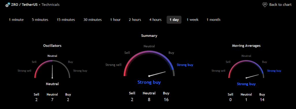 The technical analysis indicators, such as Relative Volume (RVOL), Moving Average (MA), and Relative Strength Index (RSI) of LayerZero (ZRO) are shown in the chart below.