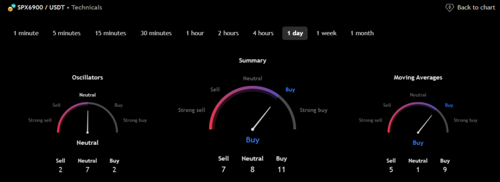 The technical analysis indicators such as Relative Volume (RVOL), Moving Average (MA), and Relative Strength Index (RSI) of SPX6900 (SPX) are shown in the chart below.