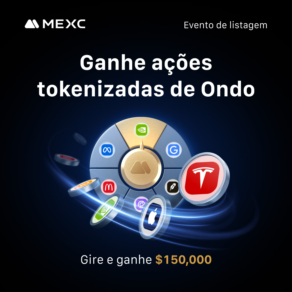 A MEXC está liderando a listagem das ações tokenizadas da ONDO Global Markets, com ativos de destaque como NVDAon, TSLAon, AMZNon, AAPLon, METAon, GOOGLon, COINon, HOODon, CRCLon e MCDon. Seja um dos primeiros a celebrar e ganhe sua parte do prêmio!