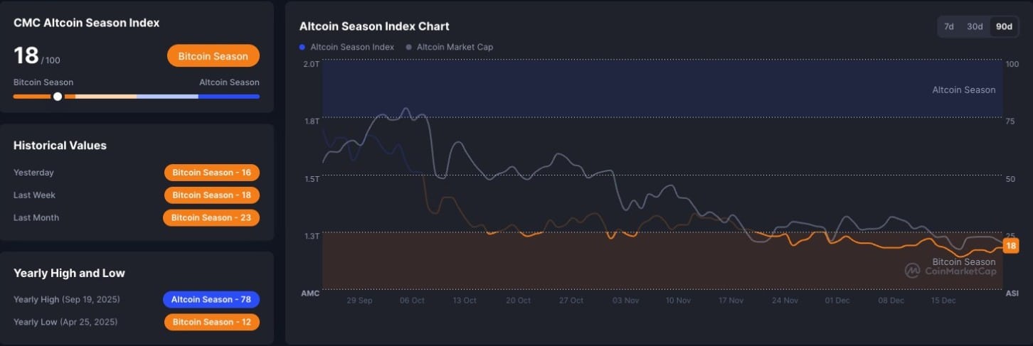 Outro fator crítico envolve a compensação de perdas fiscais, que ganhou força neste final de ano. Como várias altcoins acumulam quedas desde janeiro, fundos e investidores realizam vendas para consolidar prejuízos e equilibrar balanços. Esse fluxo cria pressão adicional nos preços e reduz a demanda no curto prazo.