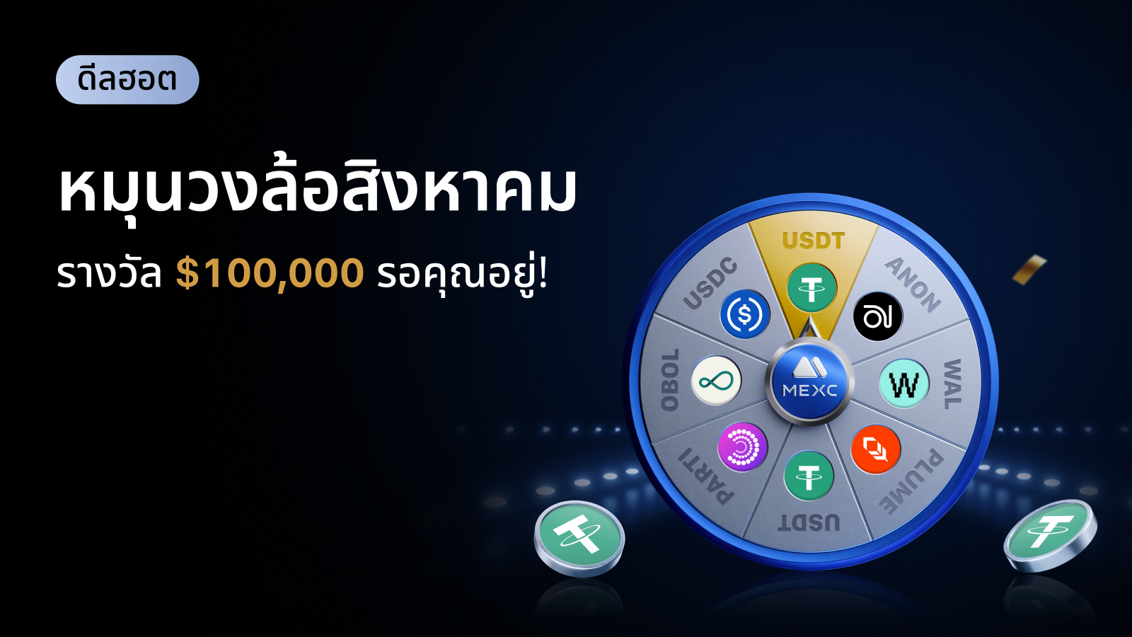 ขั้นตอนที่ 3: ใช้สิทธิ์หมุนเพื่อลุ้นรับรางวัลสูงสุด 1,000 USDT หรือโทเคนยอดฮิตอื่น ๆ