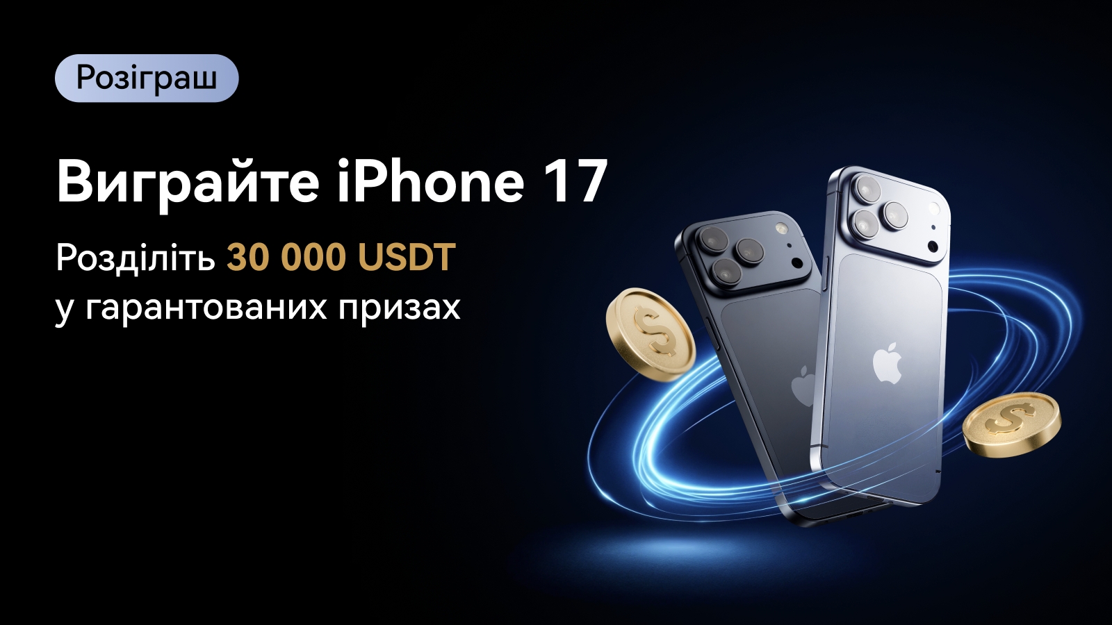• Винагороди за 100% розіграш буде нараховано протягом 10 робочих днів після завершення події. Приз iPhone 17 (1 одиниця на подію) буде конвертовано в USDT за еквівалентною вартістю, близько 1500 USDT. Токени буде надіслано на спотовий рахунок, а бонуси — на ф'ючерсні рахунки користувачів.