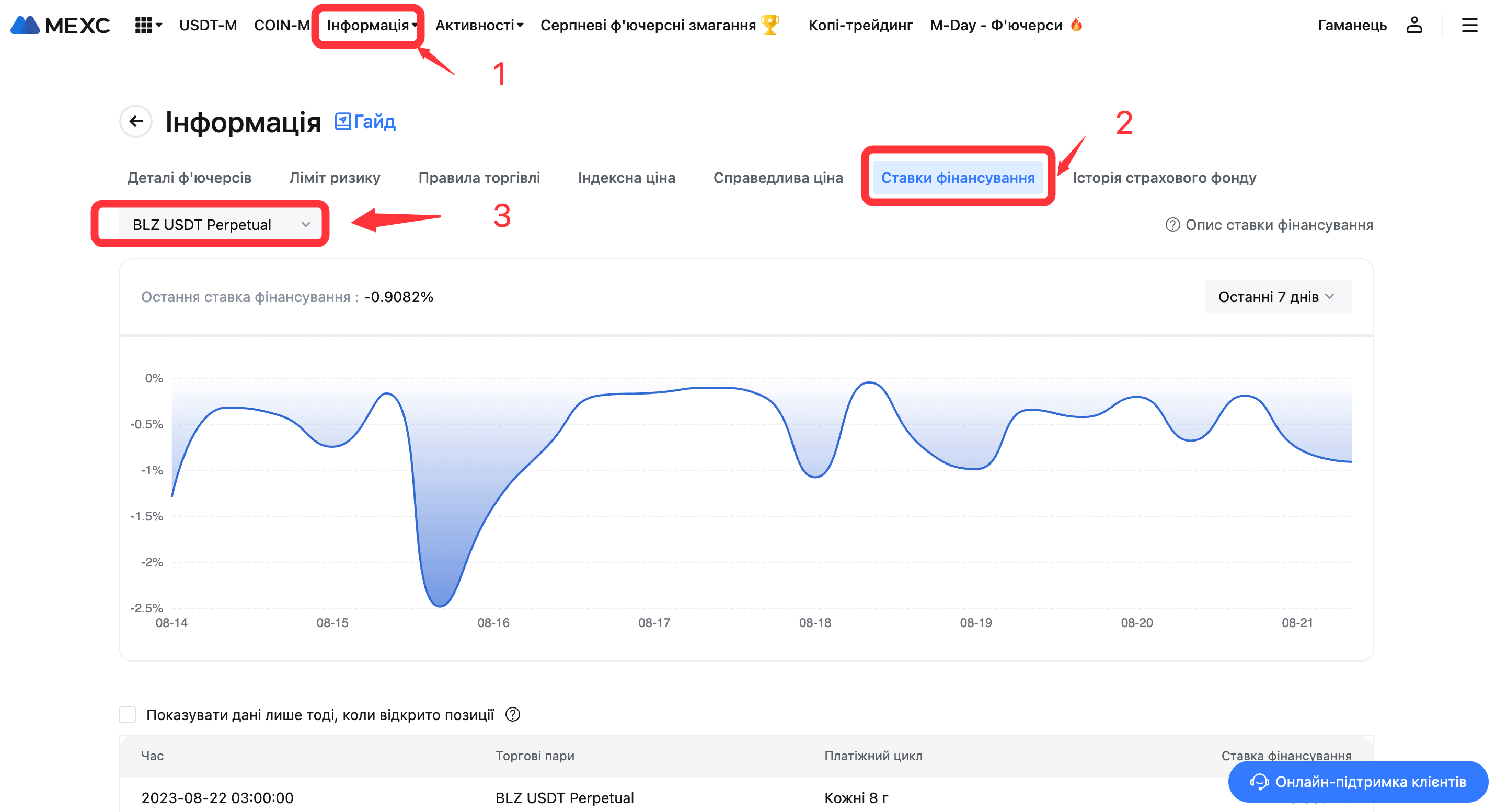 Остання інформація про ставку фінансування перегляньте у вкладці Інформація – Ставки фінансування.
