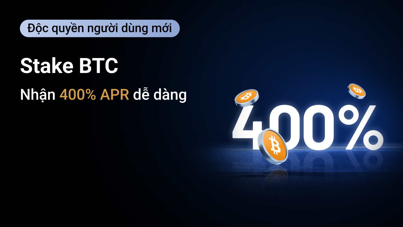 Lễ hội staking BTC hiện đang diễn ra và chỉ dành riêng cho người dùng mới. Stake BTC ngay hôm nay để nhận APR lên đến 400%. Đừng bỏ lỡ cơ hội này!