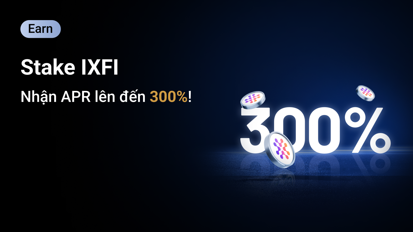 Đã đến lúc tận dụng tiền mã hoá của bạn hiệu quả hơn! MEXC trân trọng ra mắt sự kiện Stake-to-Earn IXFI - cơ hội giới hạn thời gian để bạn nhận APR lên đến 300% chỉ bằng cách stake IXFI.