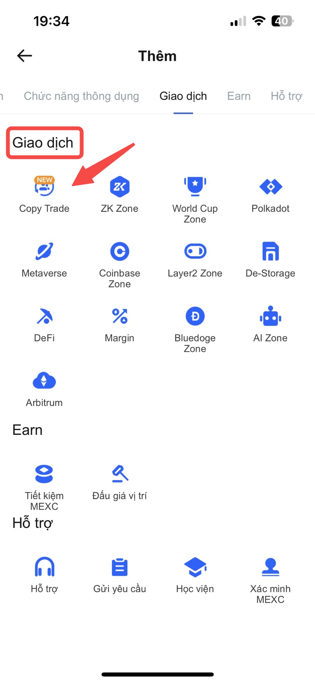 Truy cập Copy Trade:APP > Khác > Giao dịch > Copy Trade