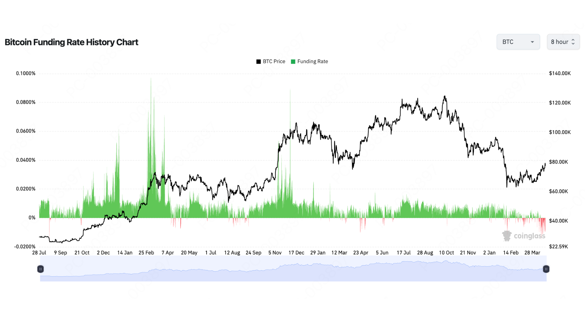 Trong khi đó, các công cụ phái sinh BTC đang thể hiện một loại căng thẳng quen thuộc: tỷ lệ Funding đã giảm xuống mức âm nhất kể từ năm 2023. Giá vẫn chưa hoàn toàn đồng thuận với tâm lý đám đông bi quan. Sự phân kỳ giữa sức mạnh của giá và Funding âm thường báo hiệu áp lực đang hình thành bên dưới bề mặt.