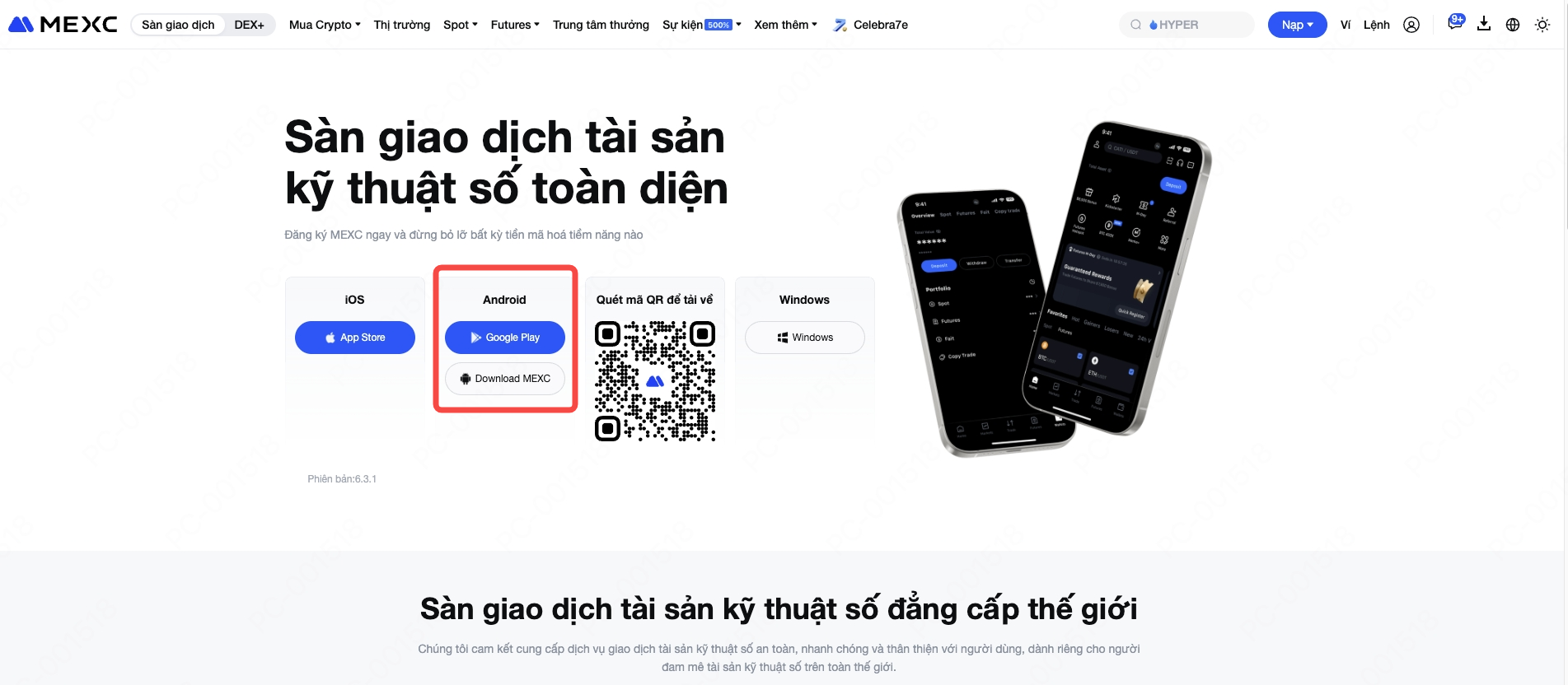 - Nếu bạn không có Android, hãy sử dụng phiên bản web của MEXC tại https://www.mexc.com/vi-VN/