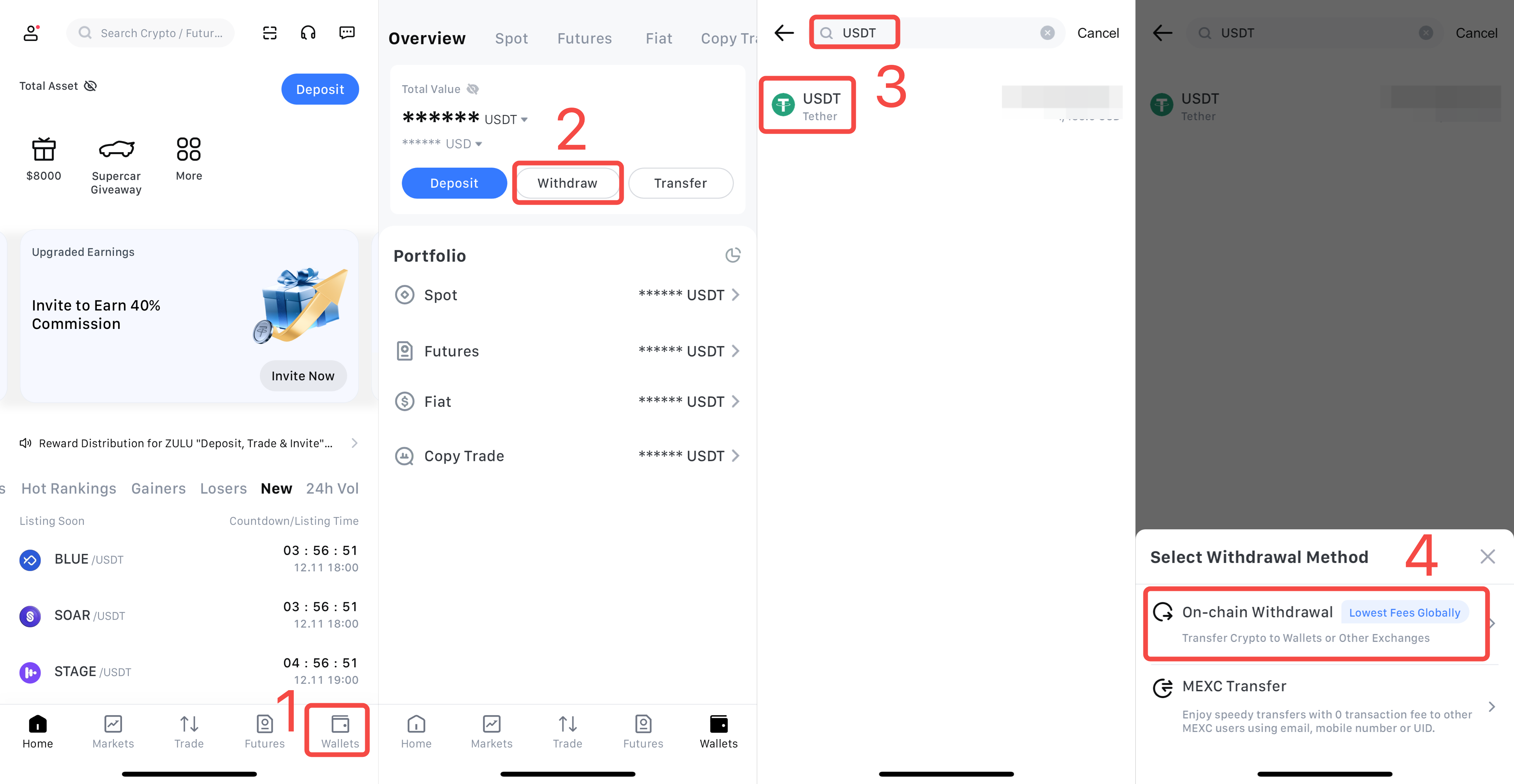 1)USDT 等支持多个链的币种,请提现时请您务必选择地址所对应的网络进行提现申请。