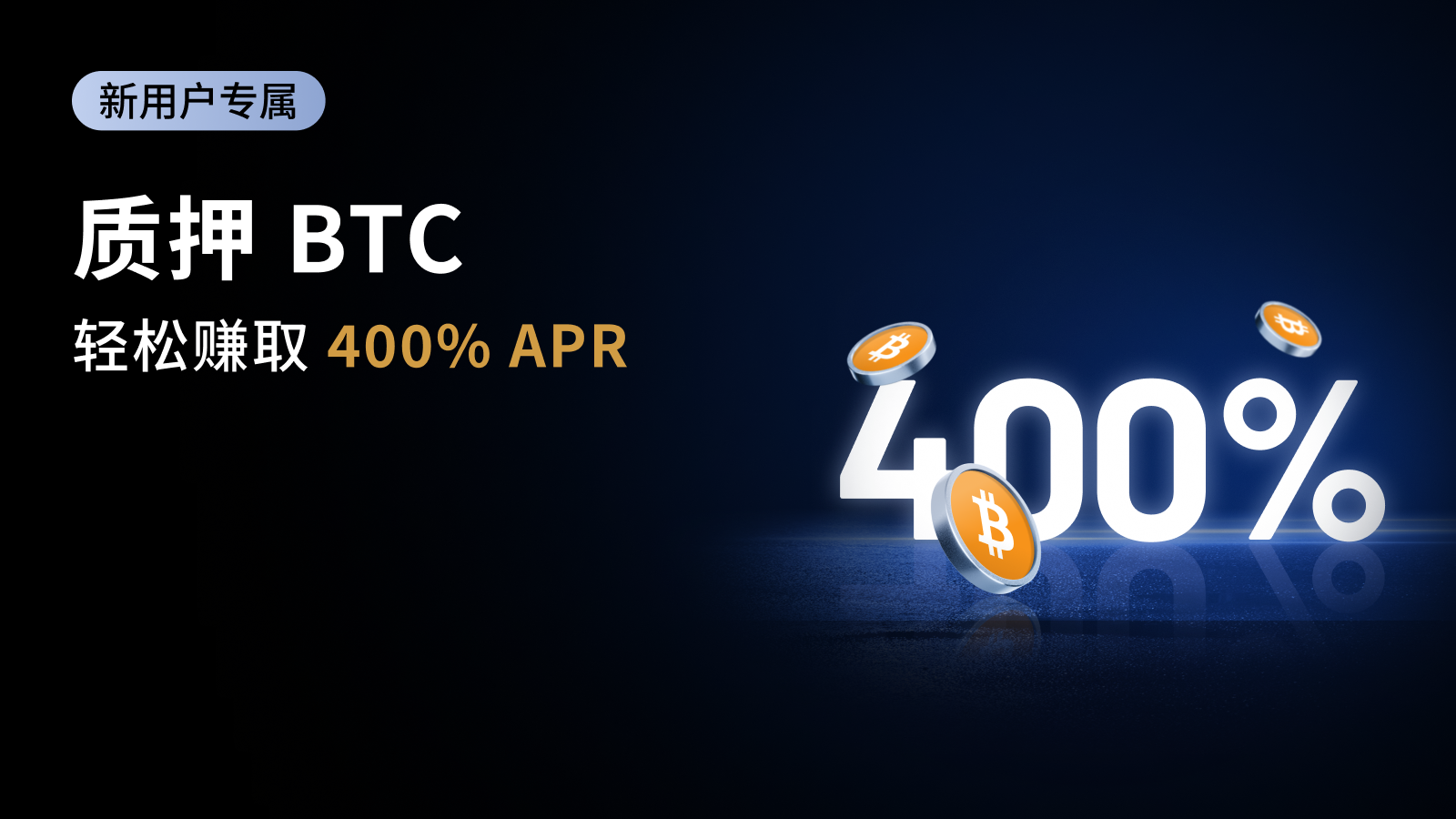 BTC 质押盛会现已重磅上线,仅限新用户参与。只需质押 BTC,即可享受 400% APR,轻松赚取丰厚回报,机会难得,不容错过!