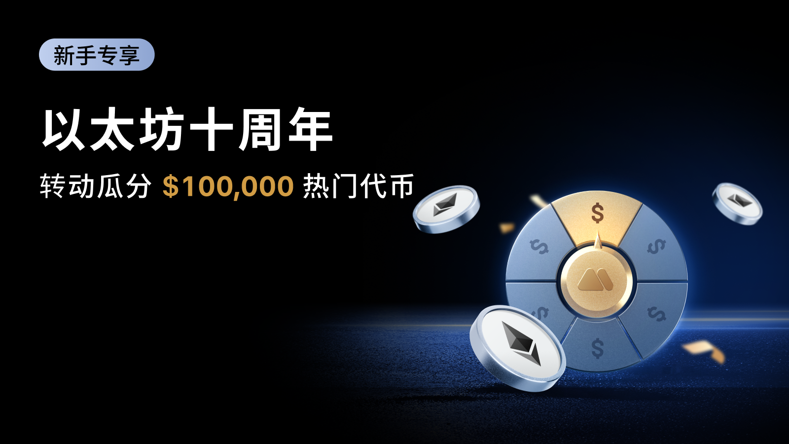赶快参加活动,转动以太坊十周年幸运转盘,瓜分高达 $100,000 的热门代币奖池!