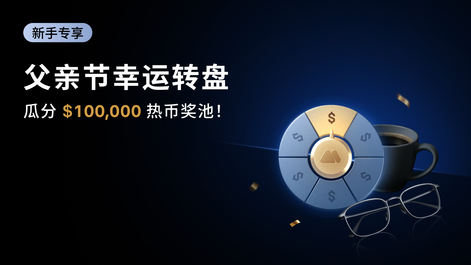 这个父亲节,我们致敬坚韧、智慧与无私的支持——参与“父亲节幸运转盘”活动,即有机会瓜分 100,000 USDT 热门代币奖池!
