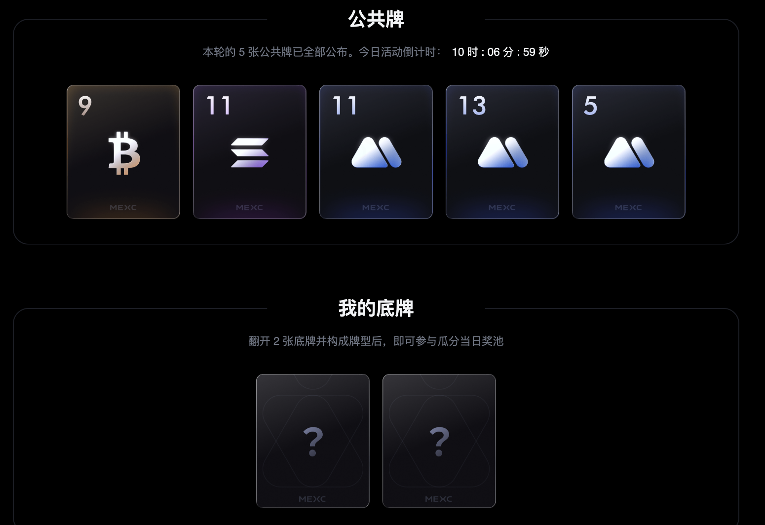 • 成功翻开两张底牌后,即可参与当日奖池瓜分。