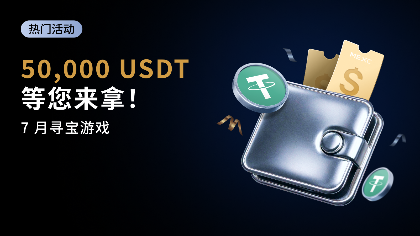 X 标志著 MEXC 宝藏地点,快来参加 7 月寻宝游戏,瓜分 50,000 USDT 大奖!无论新手还是老手,人人有奖!
